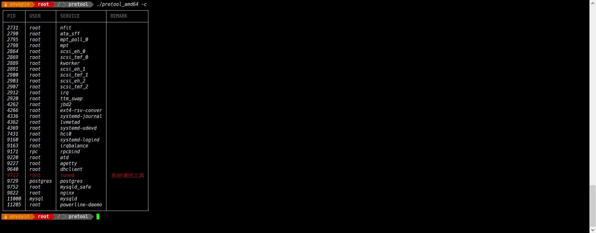Specifically designed for safe process scanning, that is, to retrieve information about non-system processes (PID greater than 1024 and without square brackets in the name), use the -c flag:
