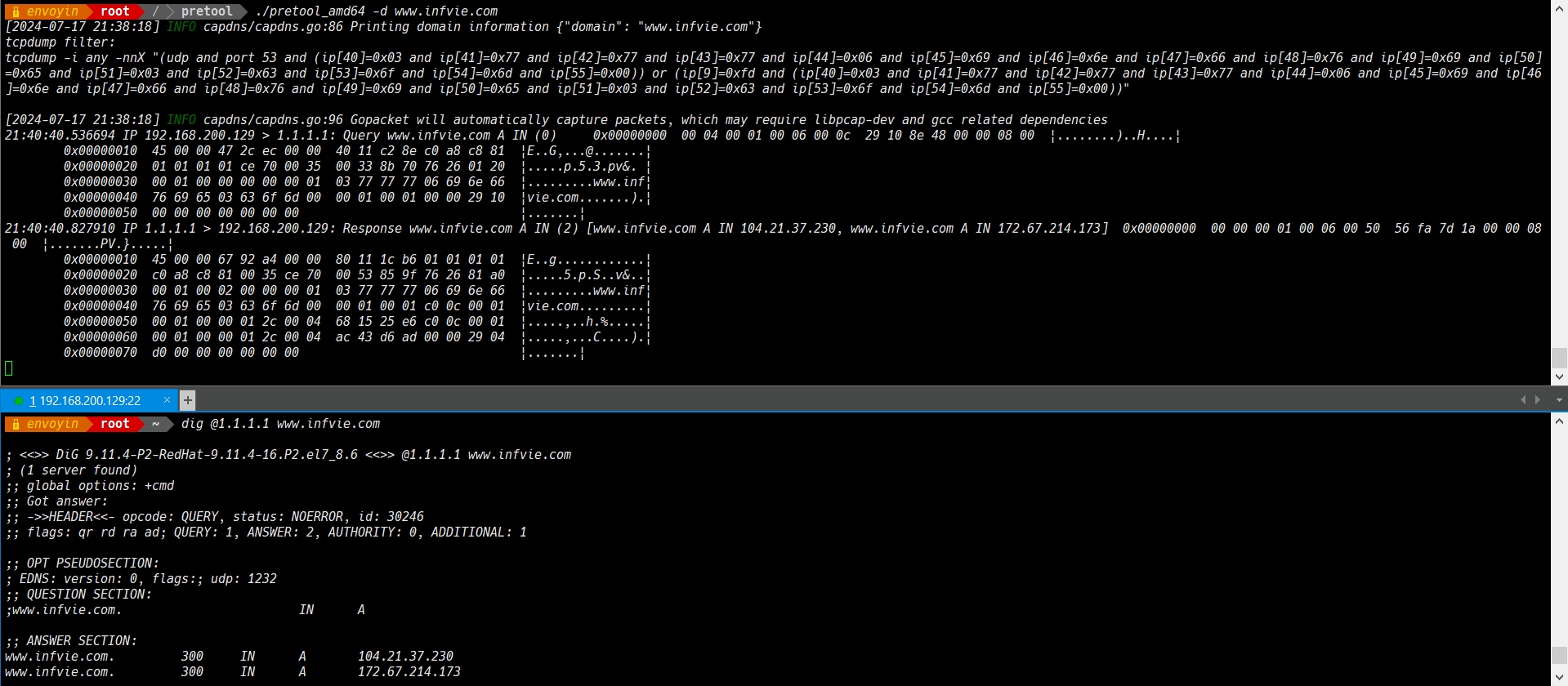 Supports service listen in both host and bridge network modes, and includes an automatic network capture utility specifically designed for DNS traffic ,and extends go nmap to implement an efficient port scanner, supporting the following automatic scanning methods: UDP, TCP complete connection, ICMP, FIN, ACK, SYN half-open, XMAS, NULL, IP protocol layer and feature code scanning.