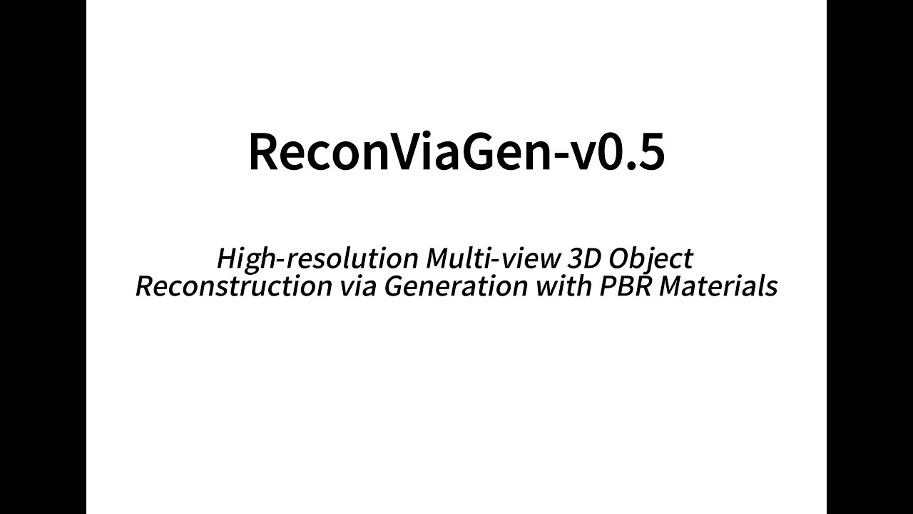🆕 News (v0.5) — Releasing the inference code of ReconViaGen-v0.5 in the v0.5 branch of this repository! Thanks for the excellent work TRELLIS.2! We have proposed an effective multi-view fusion strategy for TRELLIS.2, and then we combine ReconViaGen with TRELLIS.2 to enable the generation of high-resolution meshes and PBR materials. For details, please refer to the v0.5 branch of this repository.