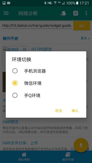 支持切换模拟为微信、手Q,默认为普通浏览器。<br>