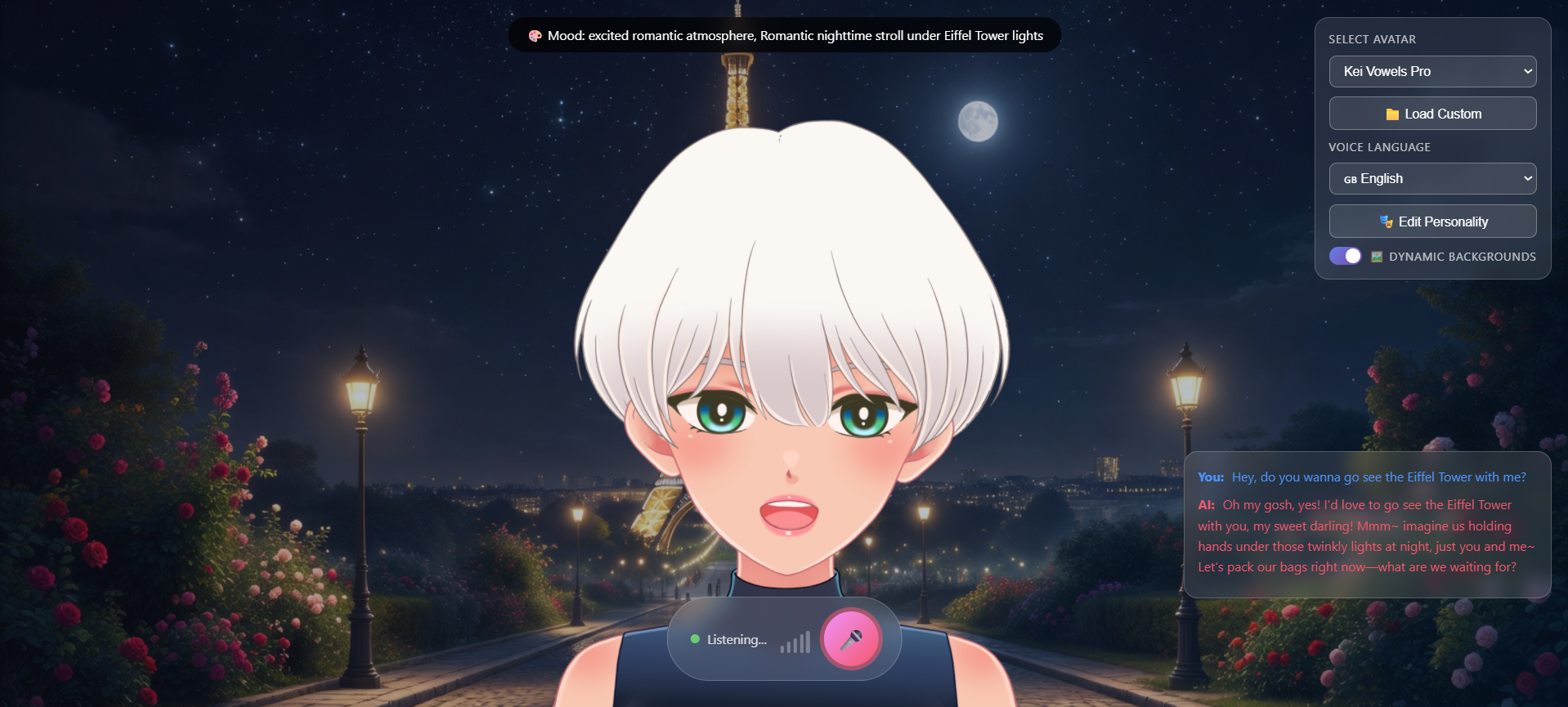 - Dynamic Backgrounds - AI-generated backgrounds that change based on conversation topics