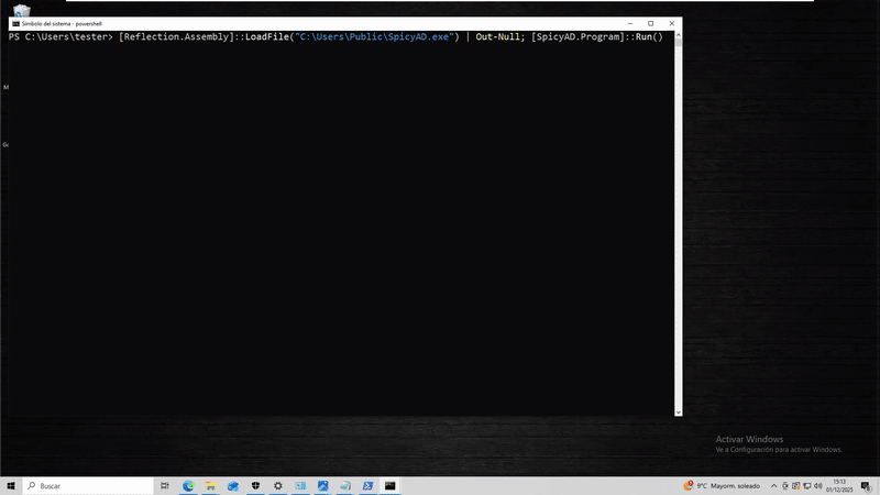 [Reflection.Assembly]::LoadFile("C:\Users\Public\SpicyAD.exe") | Out-Null; [SpicyAD.Program]::Run()