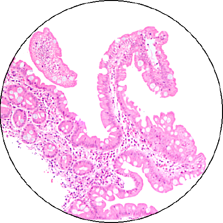 The pictures below were taken with a wide field camera on top of an eyepiece to show the whole field of view (except that the last image is cropped). The first row from left to right shows: Bright field Kohler illumination x100 oil immersion objective H&E (chronic inflammation), trans-polarisation through crossed polars x40 objective H&E (striated muscle of tongue), epifluorescence x40 objective fluorescein stain (Sonchus flower bud and pollen grains). The bottom row from left to right shows: Epi-illumination through crossed polars x4 objective (circuit board), dark ground microscopy x10 objective unstained section (colon), Schlieren phase contrast x100 oil immersion objective using the spatial light modulator (colonic crypt cells - note the distinct mucigen granules in the goblet cells).