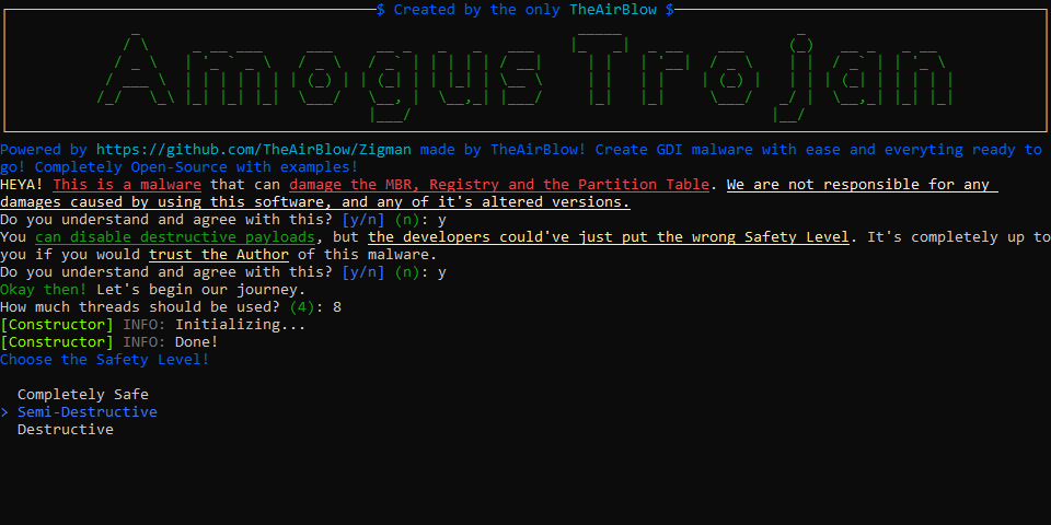 Zigman allows you to create GDI malware and also destroy the MBR, Partition Table and the Registry.