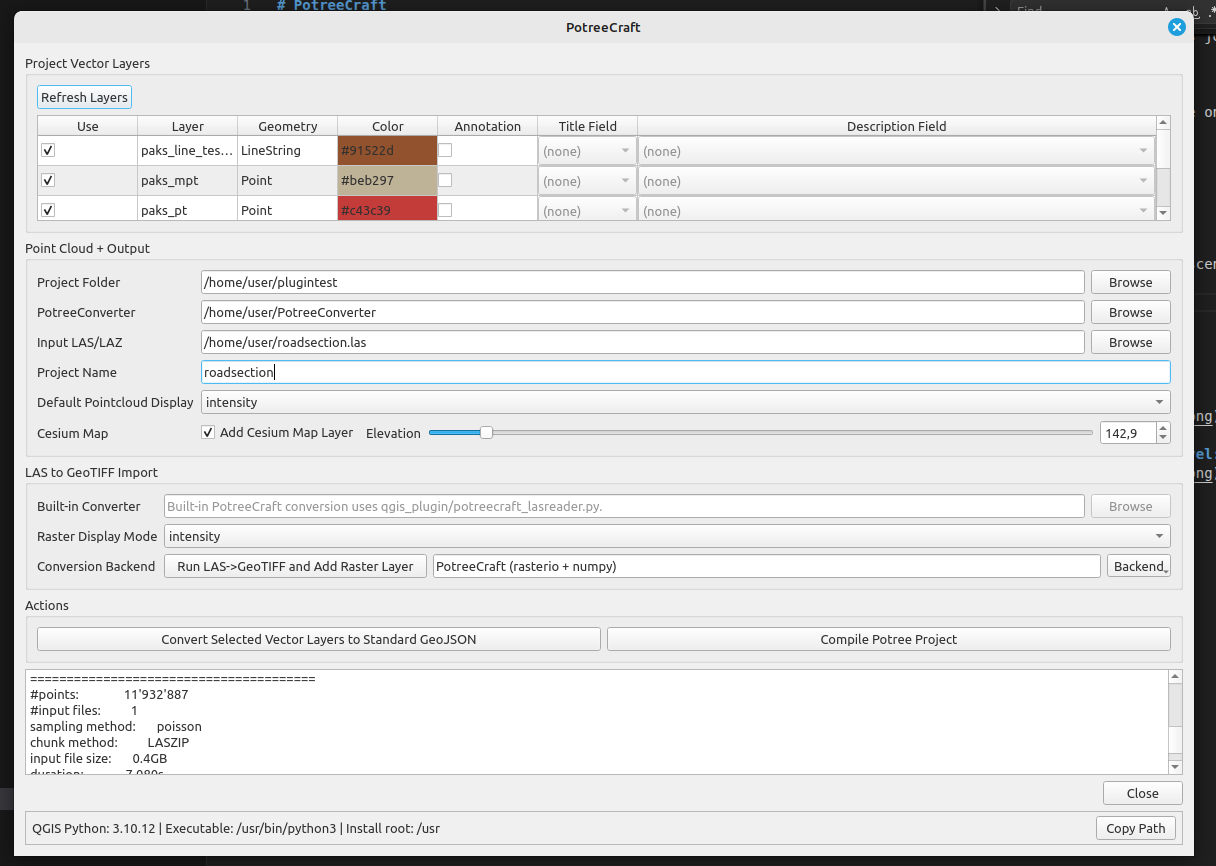 python3 potreecraft_cli.py -i /home/user/Documents/test_data/las/roadsection.las -o /home/user/Documents/output_test -p "clitest" --vector-data /home/user/Documents/test_data/vector/