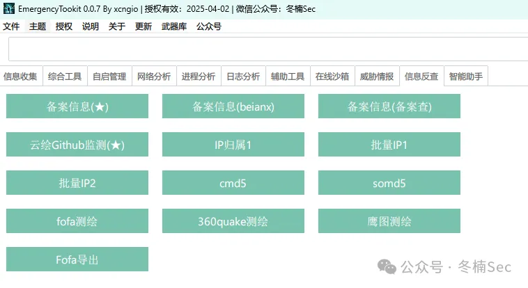 <font style="color:rgb(71, 193, 168);">EmergencyTookit</font>集合涵盖了广泛的安全与分析功能,集成了众多自研及第三方工具,以满足不同场景下的需求。