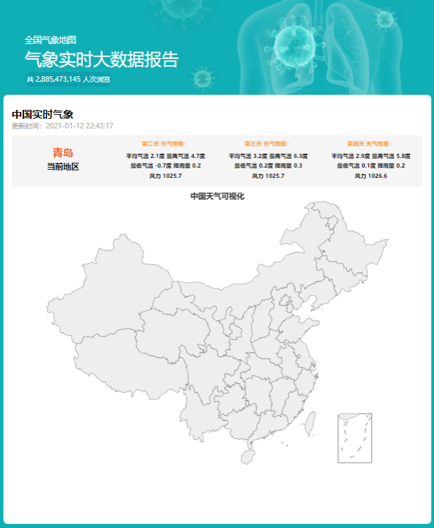 - 全国实时天气动态展示(基于中国天气网每日四次更新)