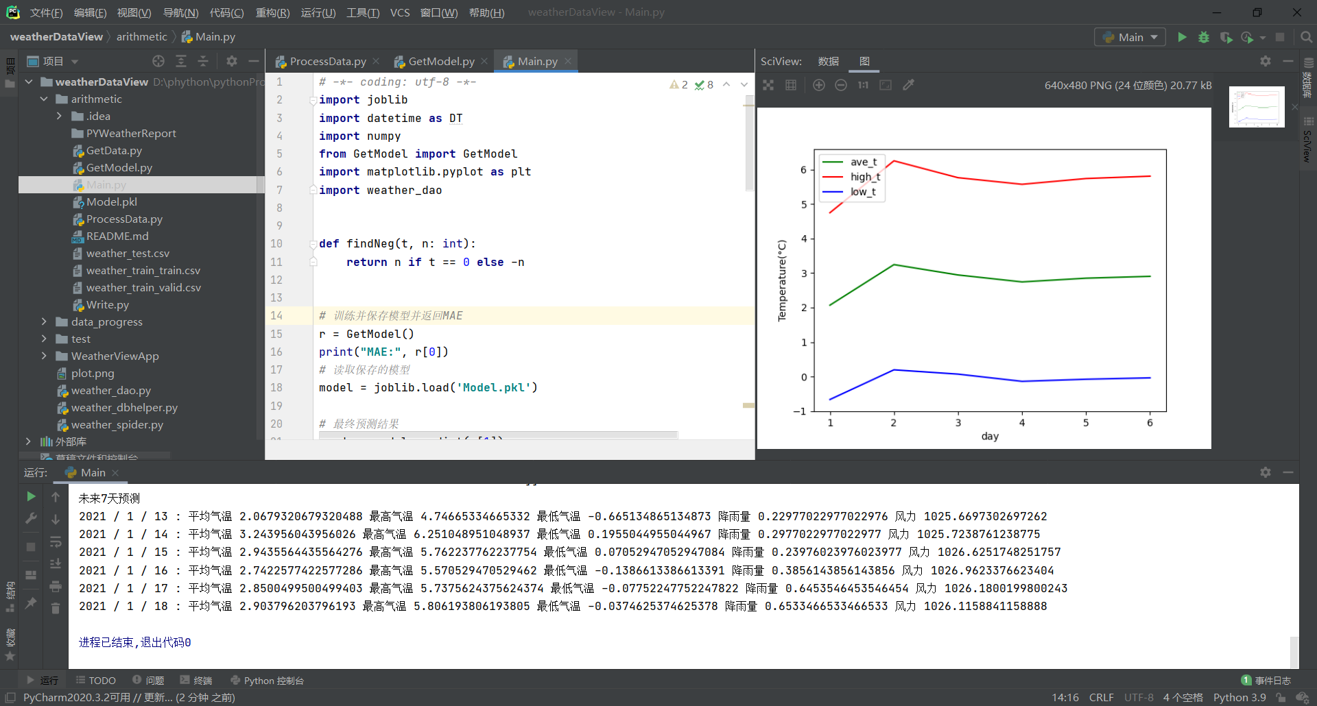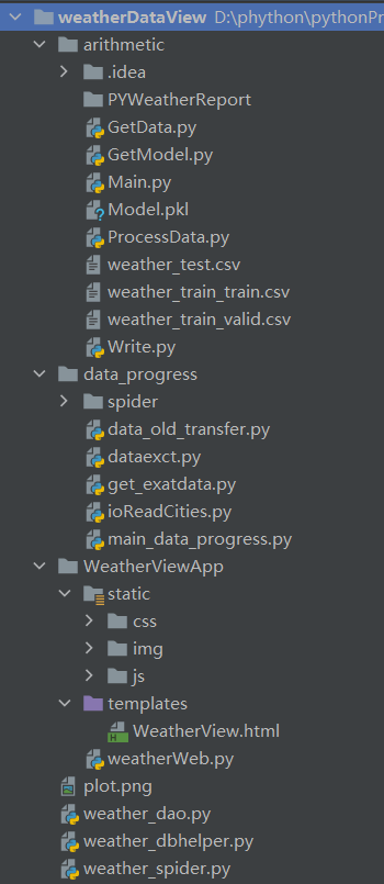 初步研发了一套基于机器学习方法Scikit-learn(sklearn)与Python结合实现的气象预报以及气象动态展示系统,本系统分为两个模块。第一个模块为气象信息动态展示模块,第二个模块为气象预测模块。