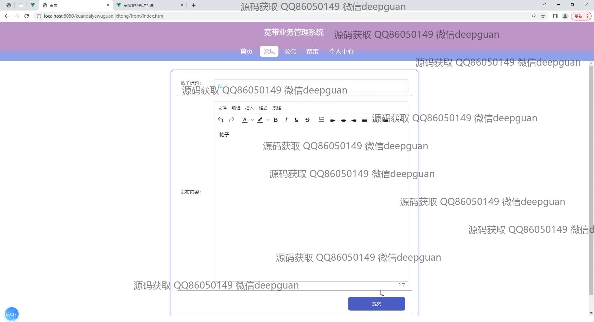 <img src="https://bs-1329754181.cos.ap-shanghai.myqcloud.com/wx.jpg" alt="二维码" style="display: block; margin: 0 auto;" width="200px"> <p><h3 align="center">获取完整代码与数据库文件 + 微信:cai998818 QQ: 86050149</h3></p> <p><h3 align="center">毕业设计代做、论文代做,找我!可定制,包查重包通过!</h3></p> <p><h3 align="center">可帮忙远程部署 包运行成功!提供远程部署、修改代码、设计文档指导、代码讲解等服务!</h3></p>功能介绍(完整见运行截图)