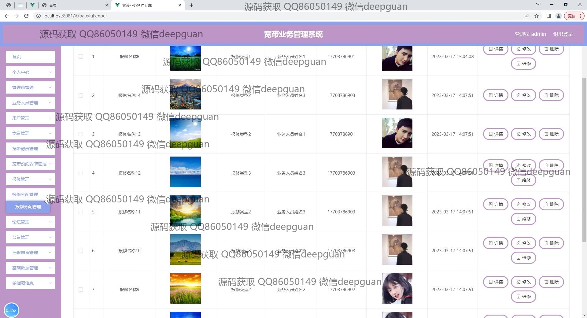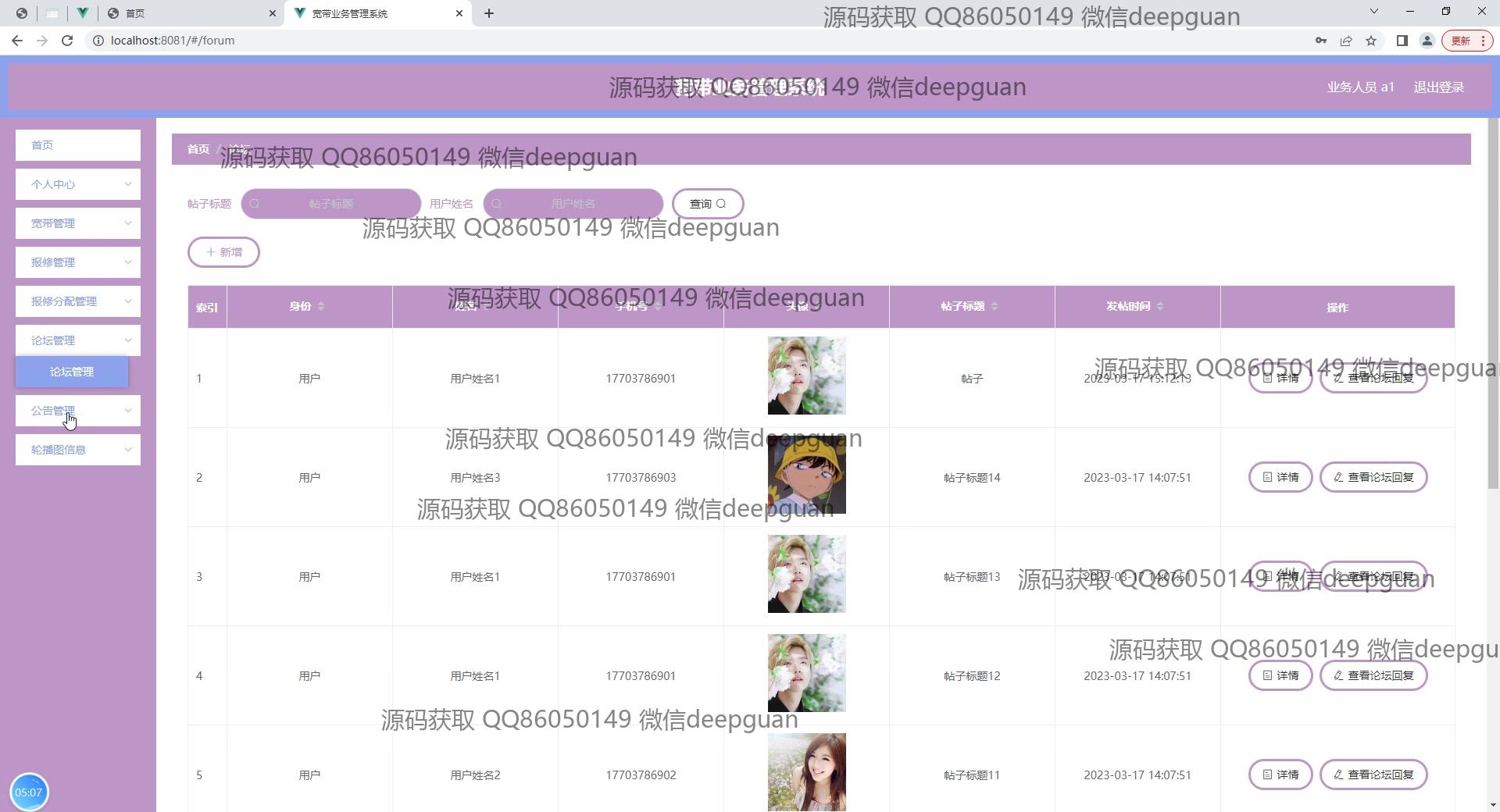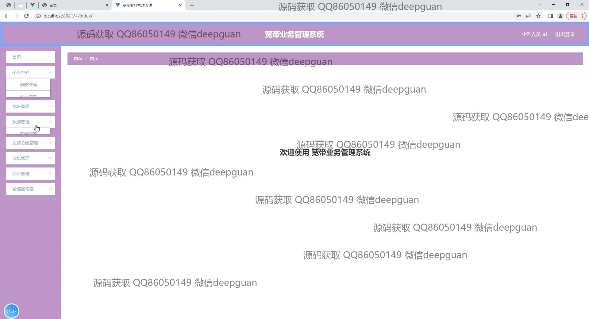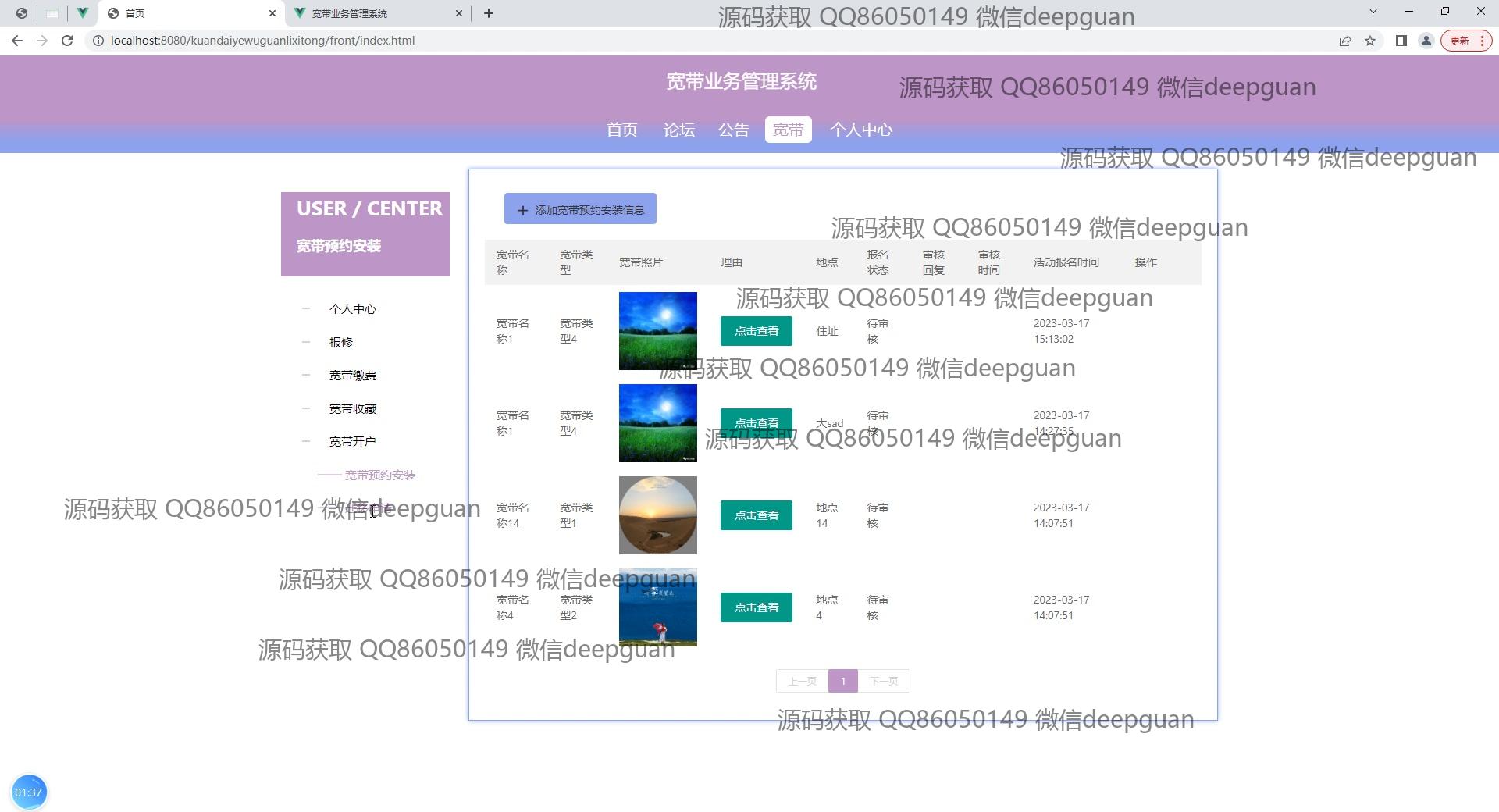 宽带业务管理系统:角色分为管理员、业务人员;功能包括用户管理、宽带管理、报修和费用管理,支持宽带服务的申请、审批和支付处理,提高运营效率和用户体验。 --计算机毕业设计源码;毕设源码;java毕业设计源码