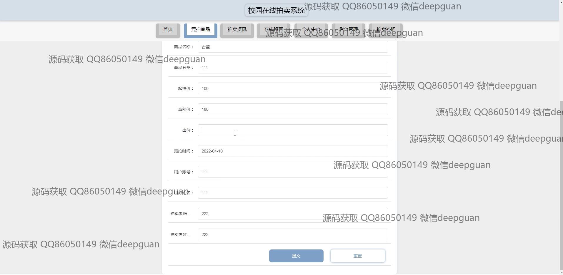 校园在线拍卖系统_管理系统_毕业设计源码