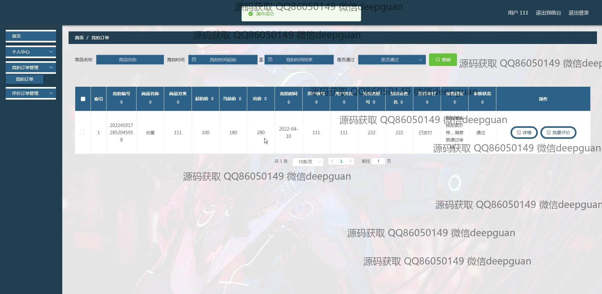 校园在线拍卖系统:角色分为管理员、用户;功能包括商品浏览与管理、用户注册登录、竞拍及订单管理、评价系统和在线留言,支持实时出价与信息查询,界面友好易用。 --计算机毕业设计源码;毕设源码;java毕业设计源码