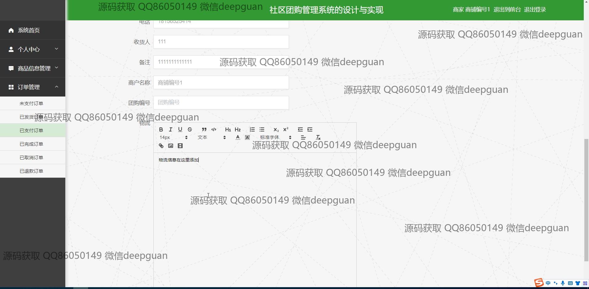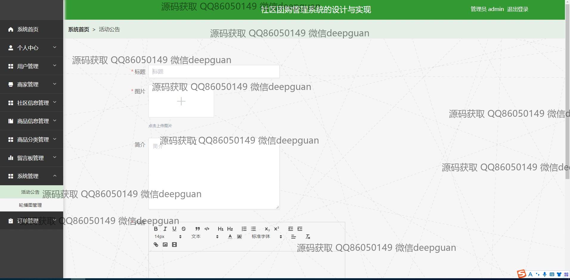 <img src="https://bs-1329754181.cos.ap-shanghai.myqcloud.com/wx.jpg" alt="二维码" style="display: block; margin: 0 auto;" width="200px"> <p><h3 align="center">获取完整代码与数据库文件 + 微信:cai998818 QQ: 86050149</h3></p> <p><h3 align="center">毕业设计代做、论文代做,找我!可定制,包查重包通过!</h3></p> <p><h3 align="center">可帮忙远程部署 包运行成功!提供远程部署、修改代码、设计文档指导、代码讲解等服务!</h3></p>功能介绍(完整见运行截图)