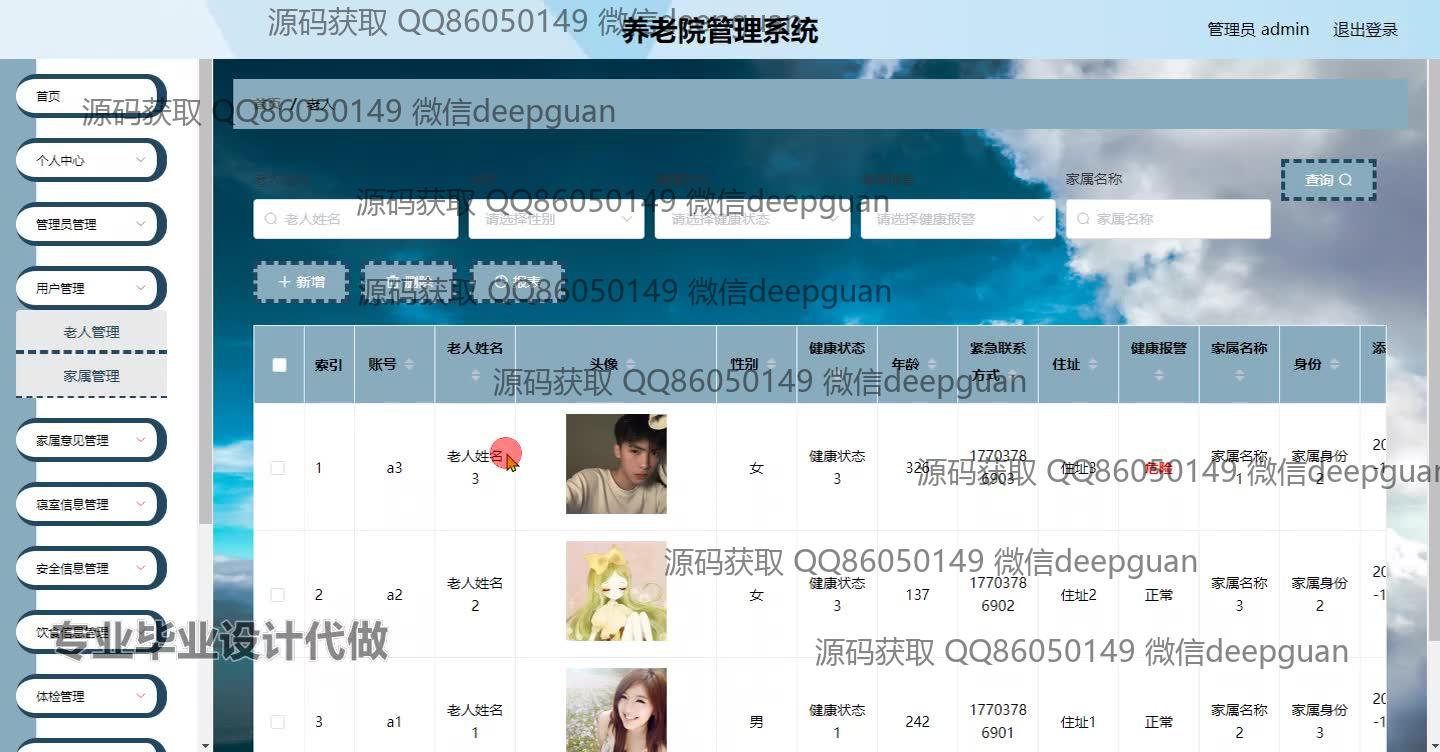 养老院管理系统_管理系统_毕业设计源码