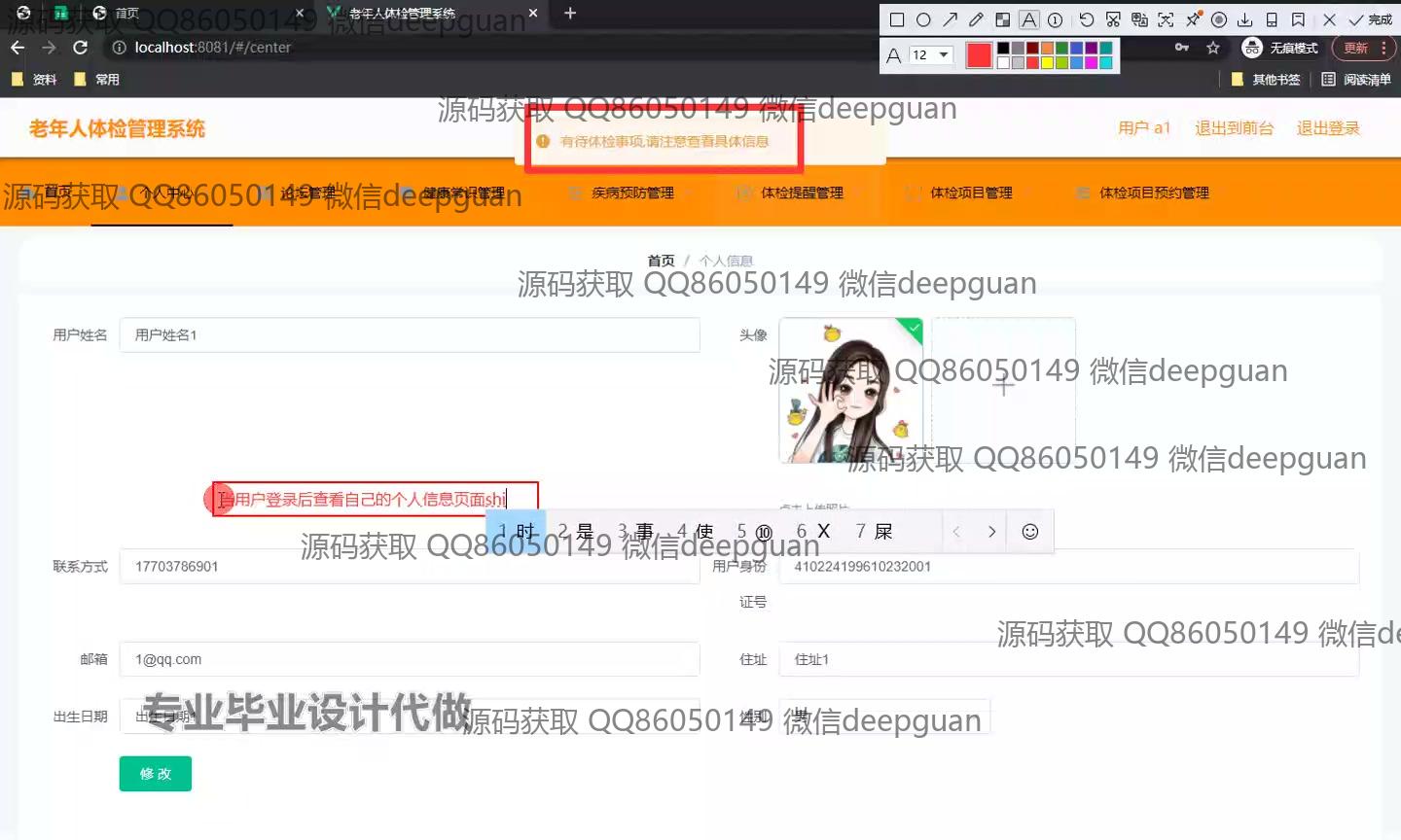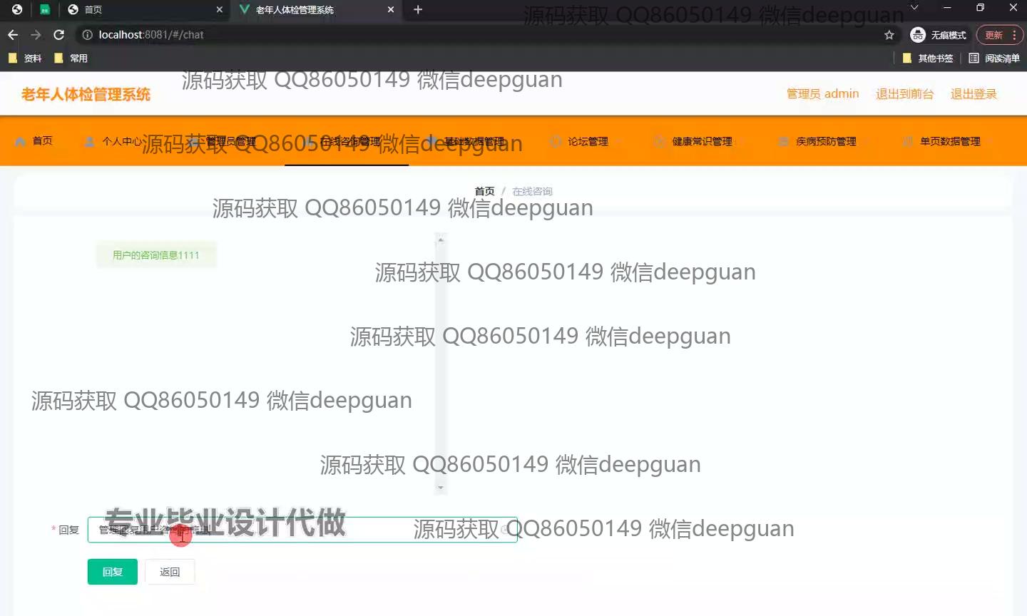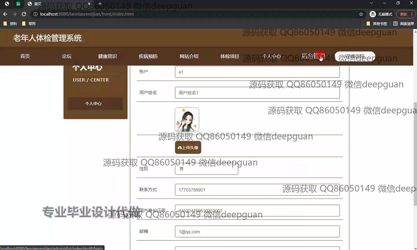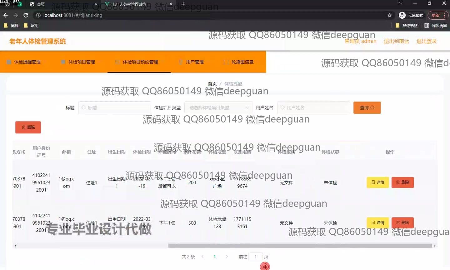 老年人体检管理系统:角色分为管理员、用户;功能包括体检预约、健康档案管理、个人信息管理、在线咨询、健康知识分享,支持便捷高效的体检和健康数据管理。 --计算机毕业设计源码;毕设源码;java毕业设计源码