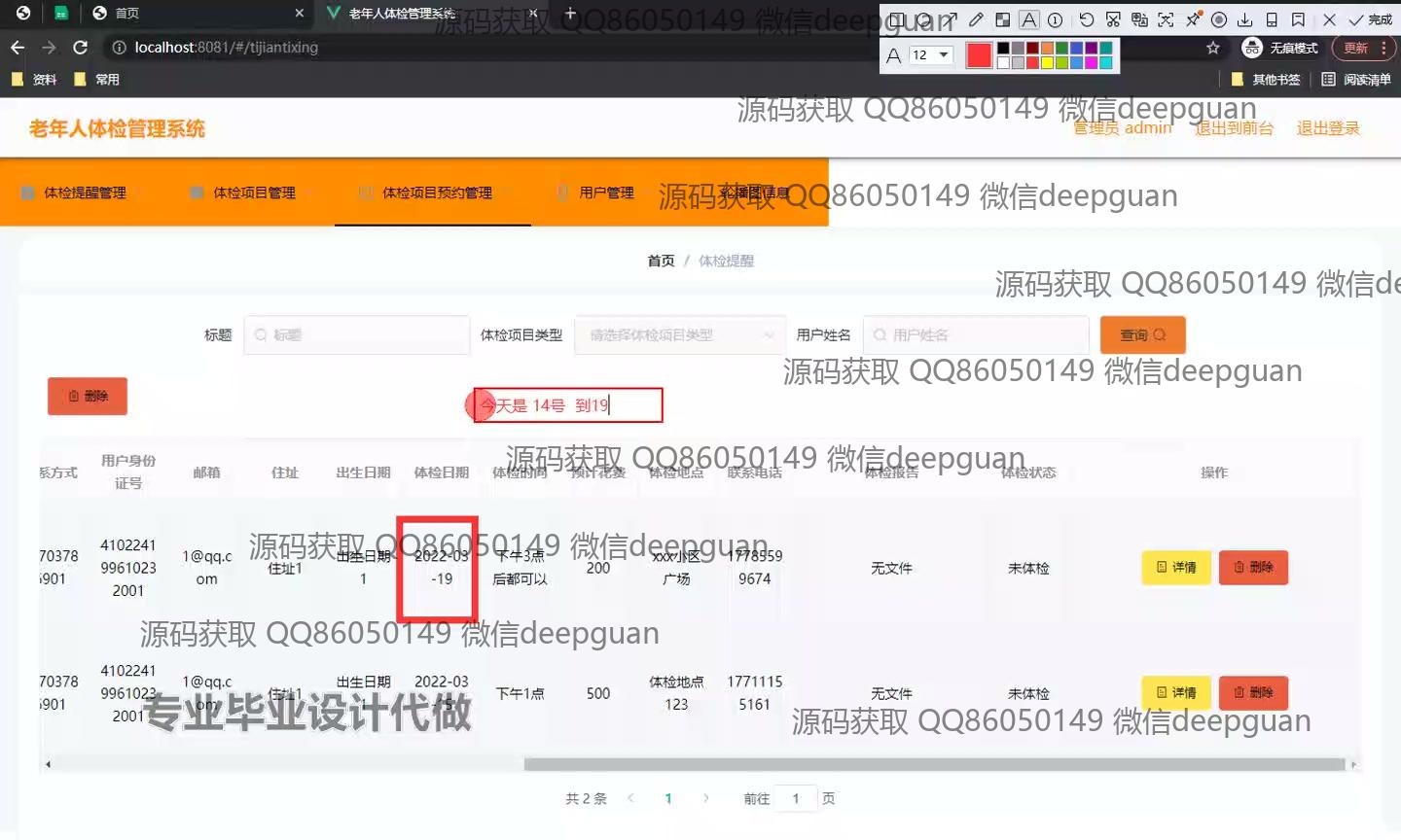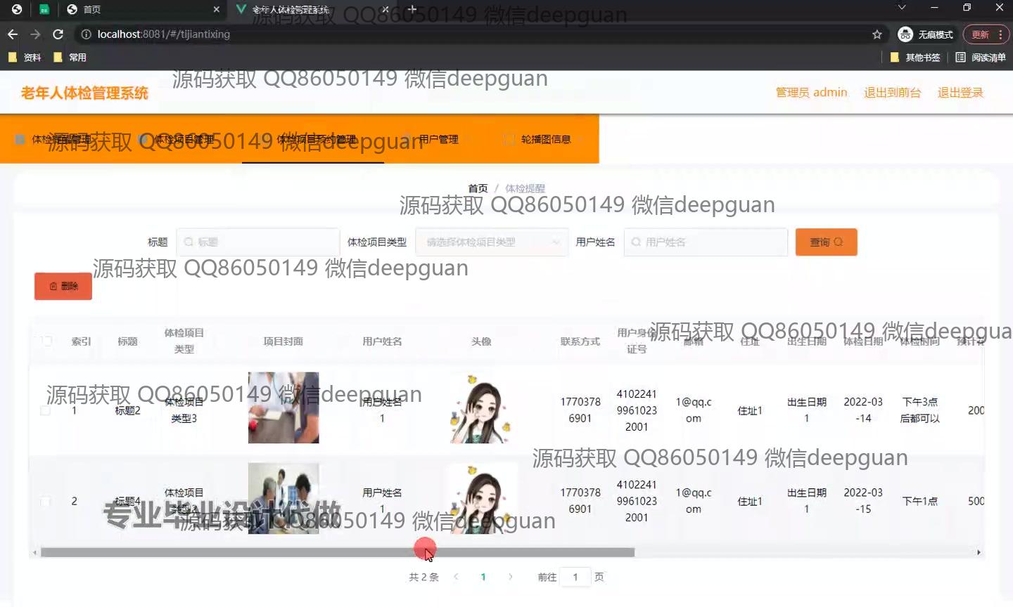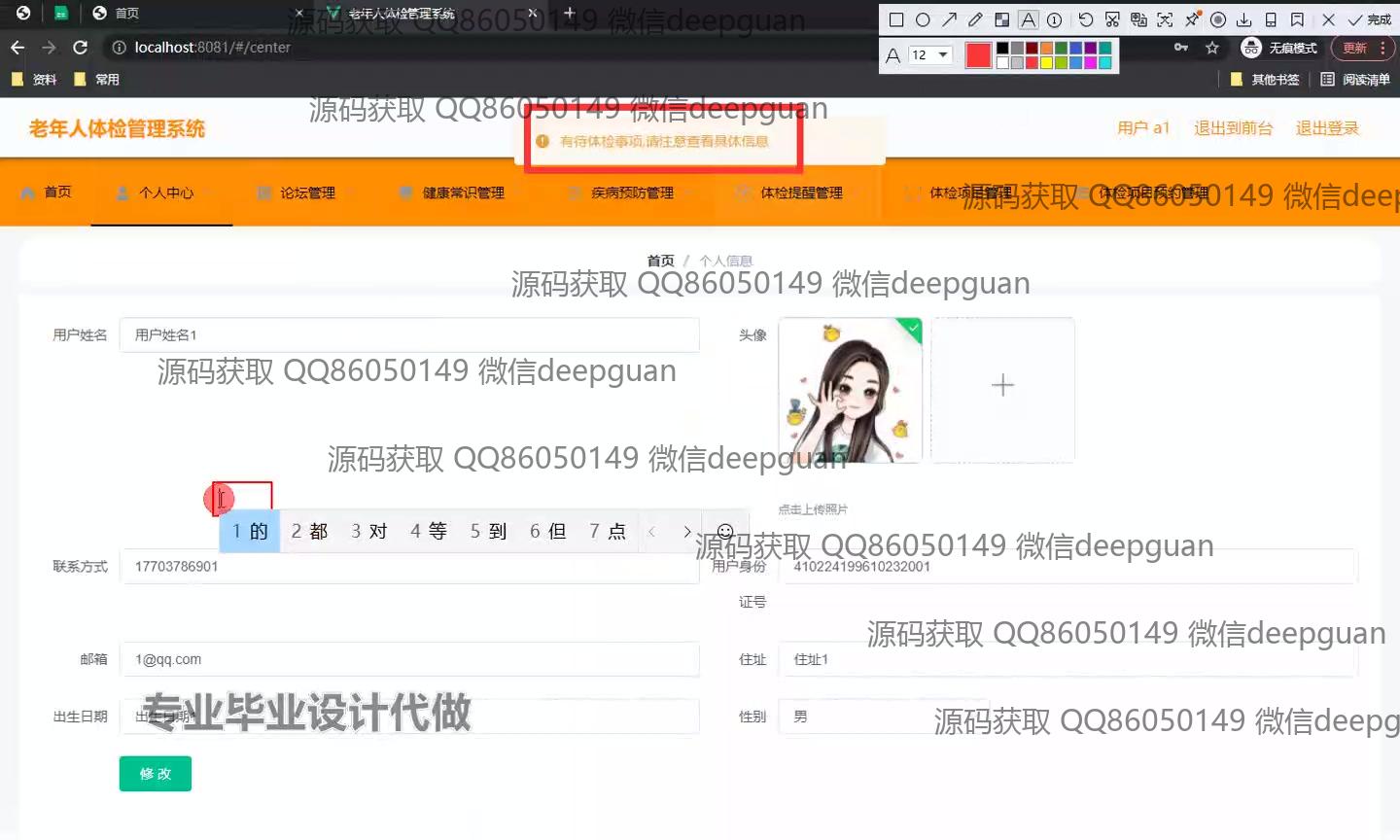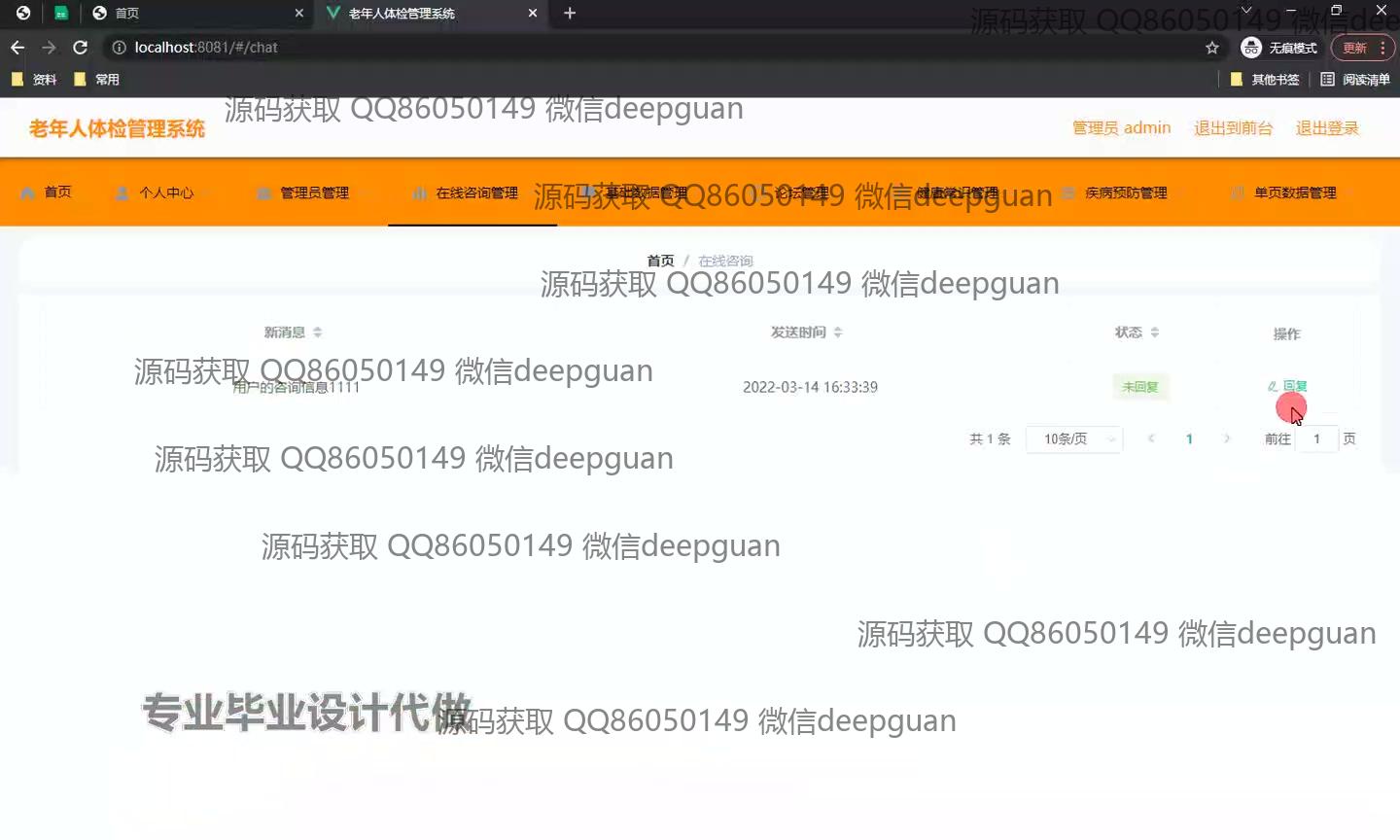 老年人体检管理系统:角色分为管理员、用户;功能包括体检预约、健康档案管理、个人信息管理、在线咨询、健康知识分享,支持便捷高效的体检和健康数据管理。 --计算机毕业设计源码;毕设源码;java毕业设计源码