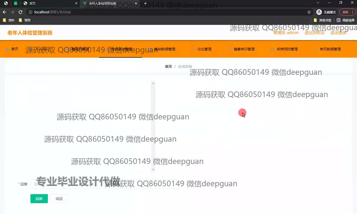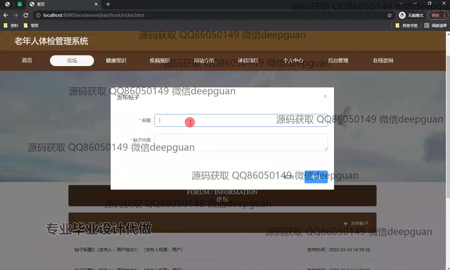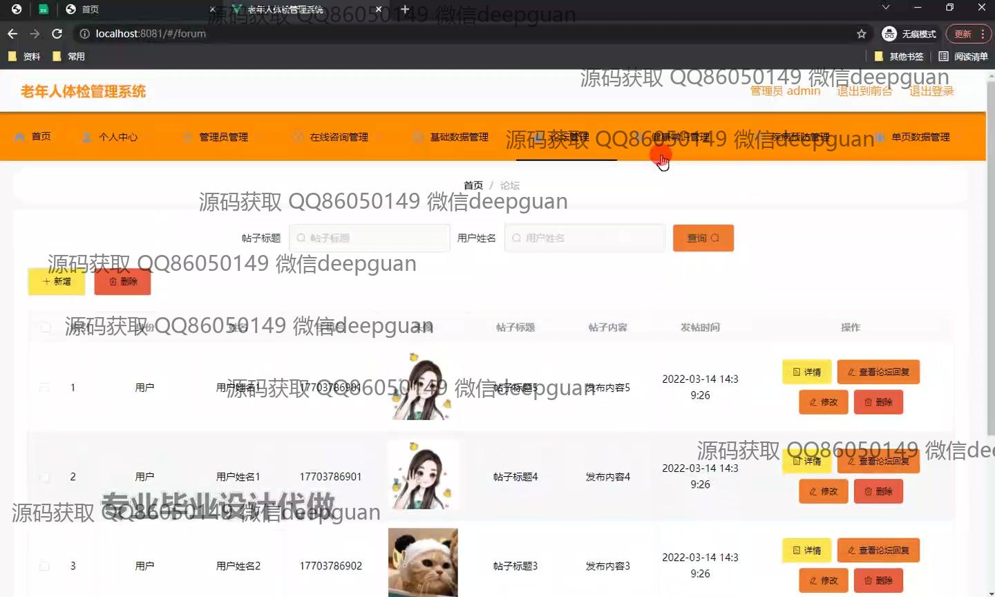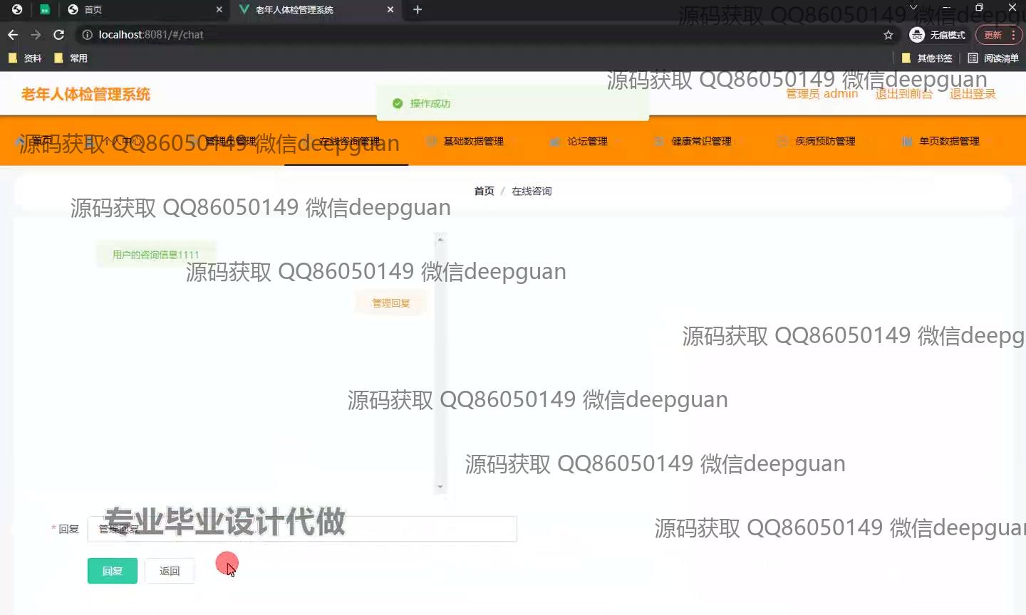 <img src="https://bs-1329754181.cos.ap-shanghai.myqcloud.com/wx.jpg" alt="二维码" style="display: block; margin: 0 auto;" width="200px"> <p><h3 align="center">获取完整代码与数据库文件 + 微信:cai998818 QQ: 86050149</h3></p> <p><h3 align="center">毕业设计代做、论文代做,找我!可定制,包查重包通过!</h3></p> <p><h3 align="center">可帮忙远程部署 包运行成功!提供远程部署、修改代码、设计文档指导、代码讲解等服务!</h3></p>功能介绍(完整见运行截图)