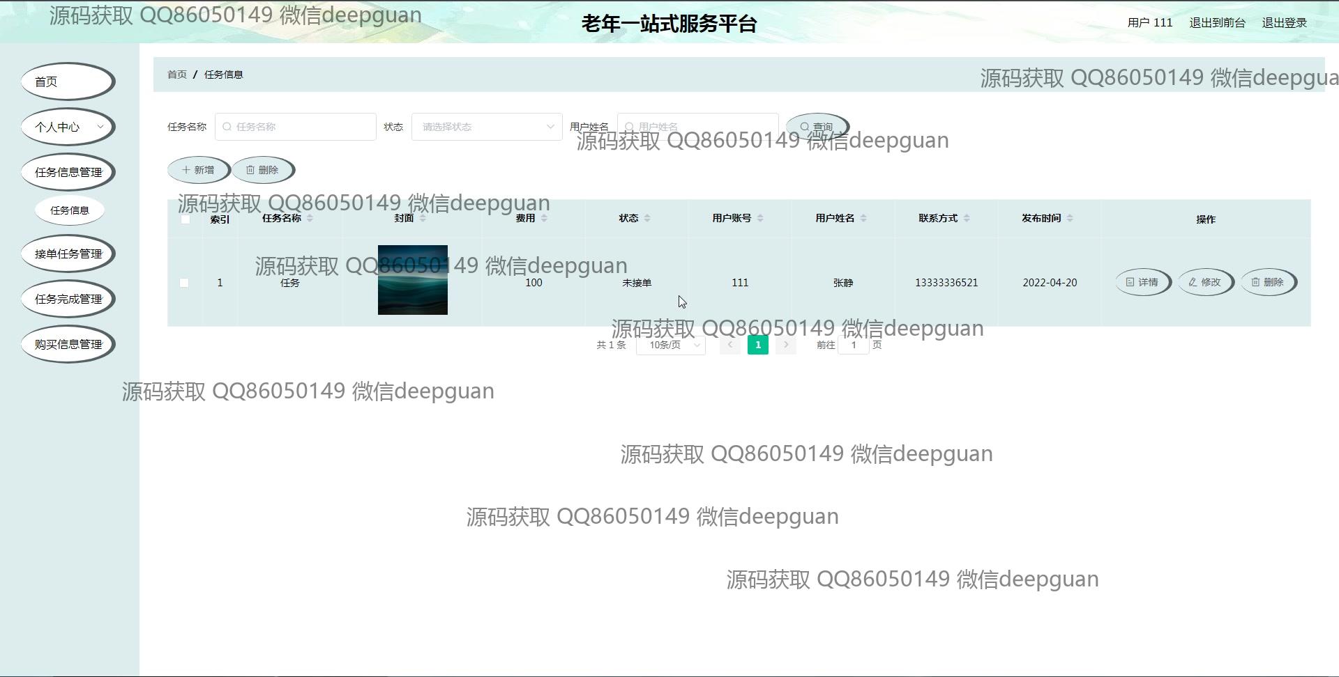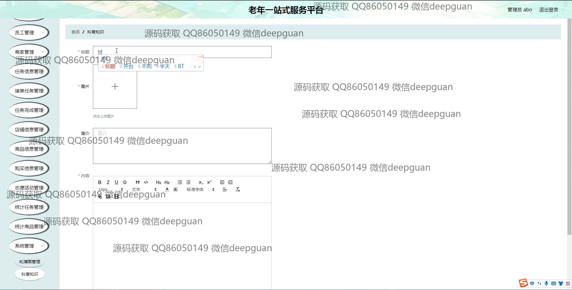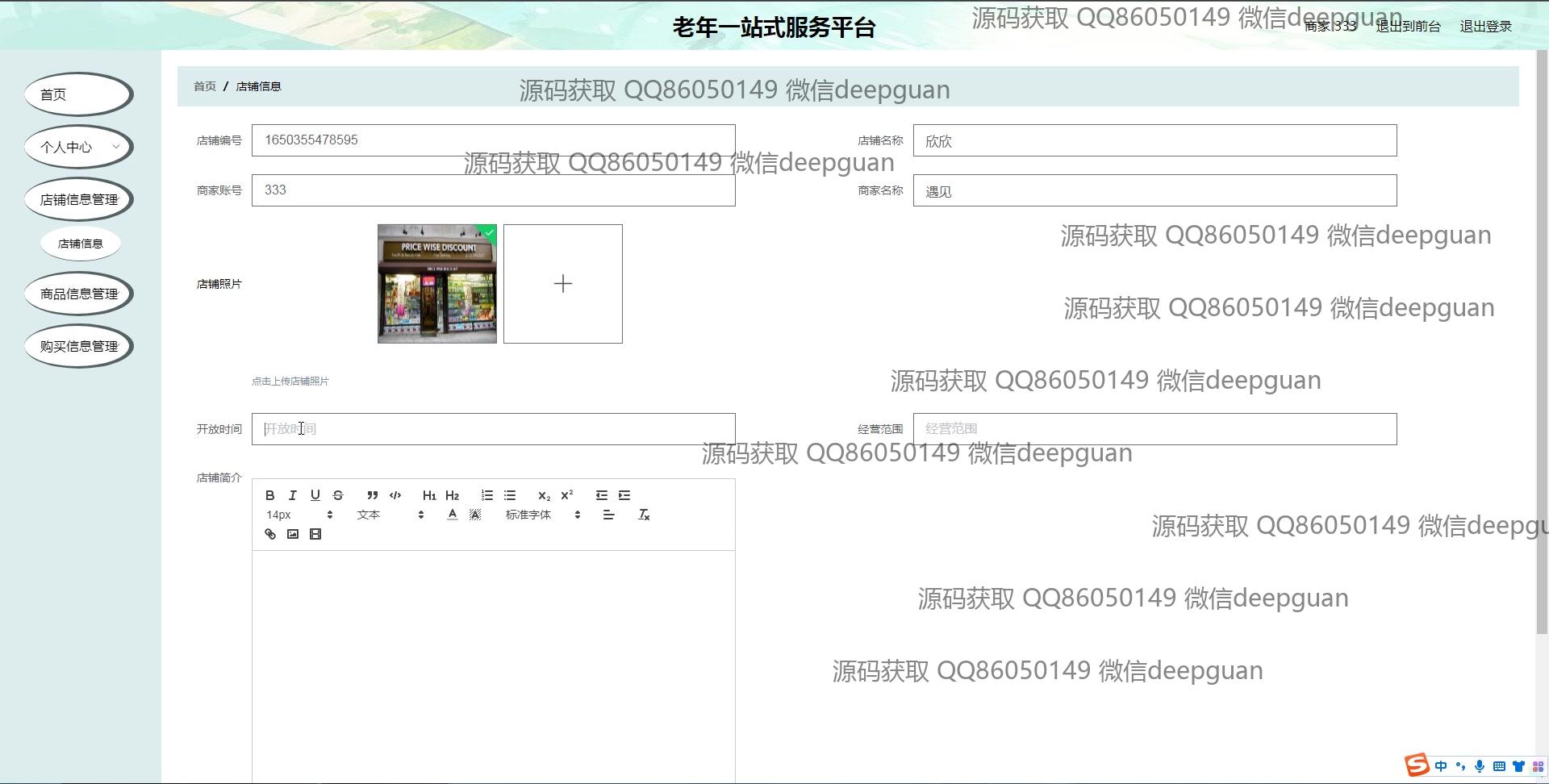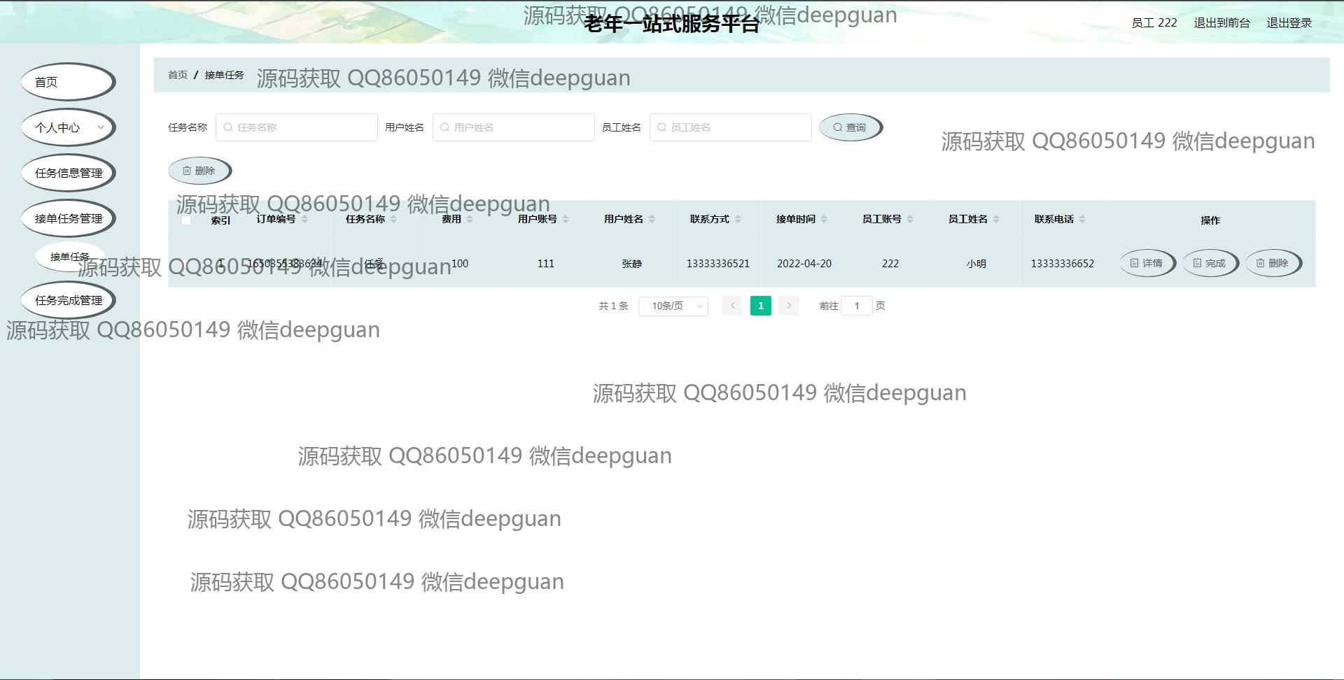 老年一站式服务平台:角色分为管理员、商家、员工;功能包括用户管理、店铺信息管理、商品信息管理、志愿活动管理、任务信息管理和购买信息管理。 --计算机毕业设计源码;毕设源码;java毕业设计源码