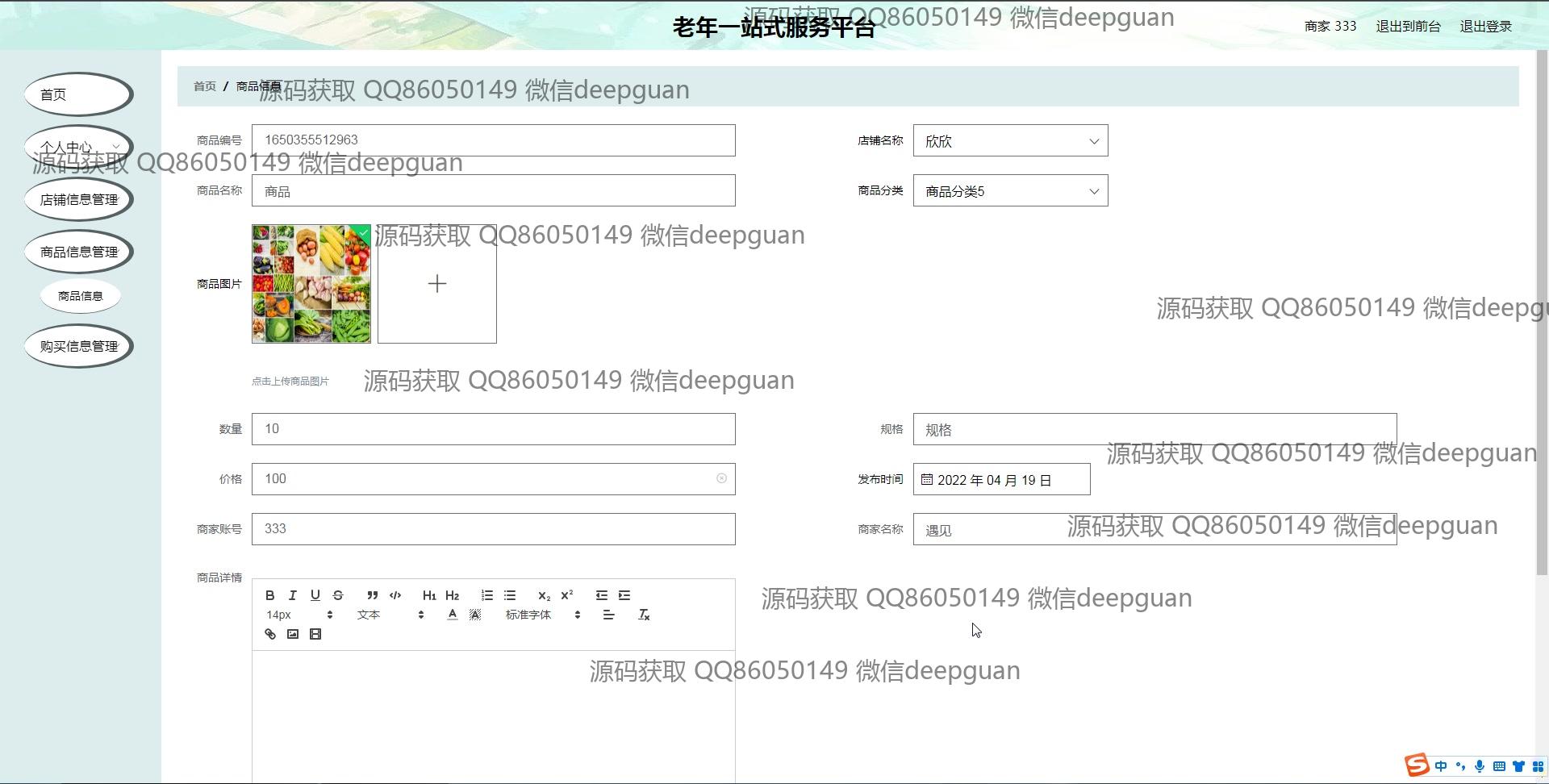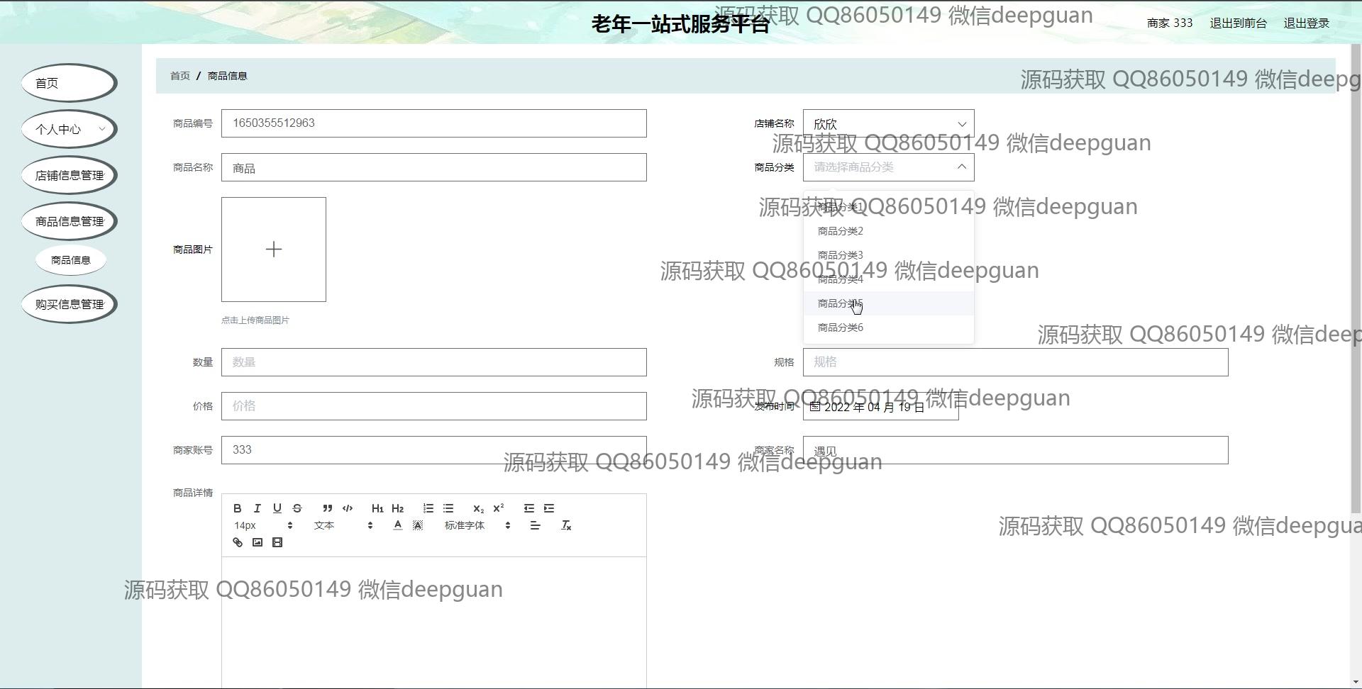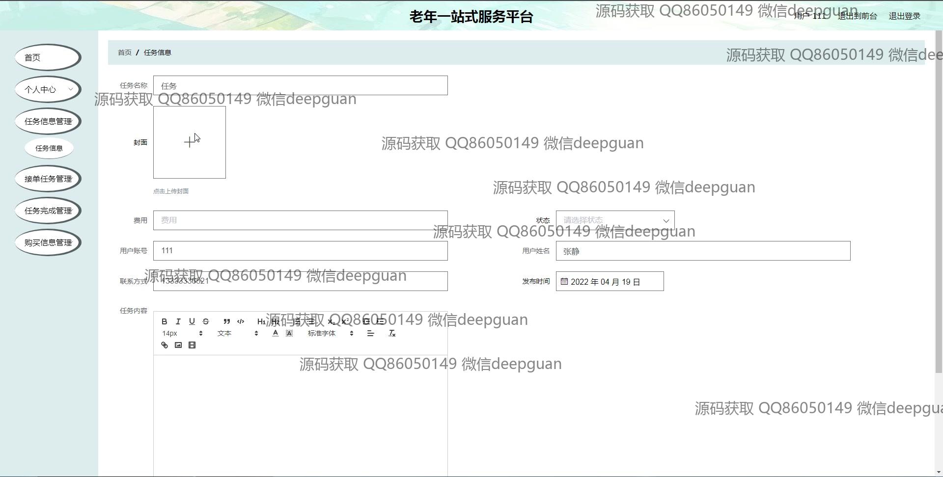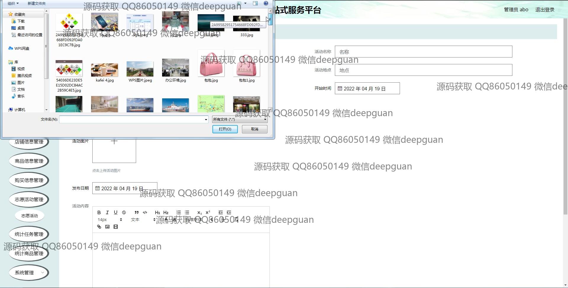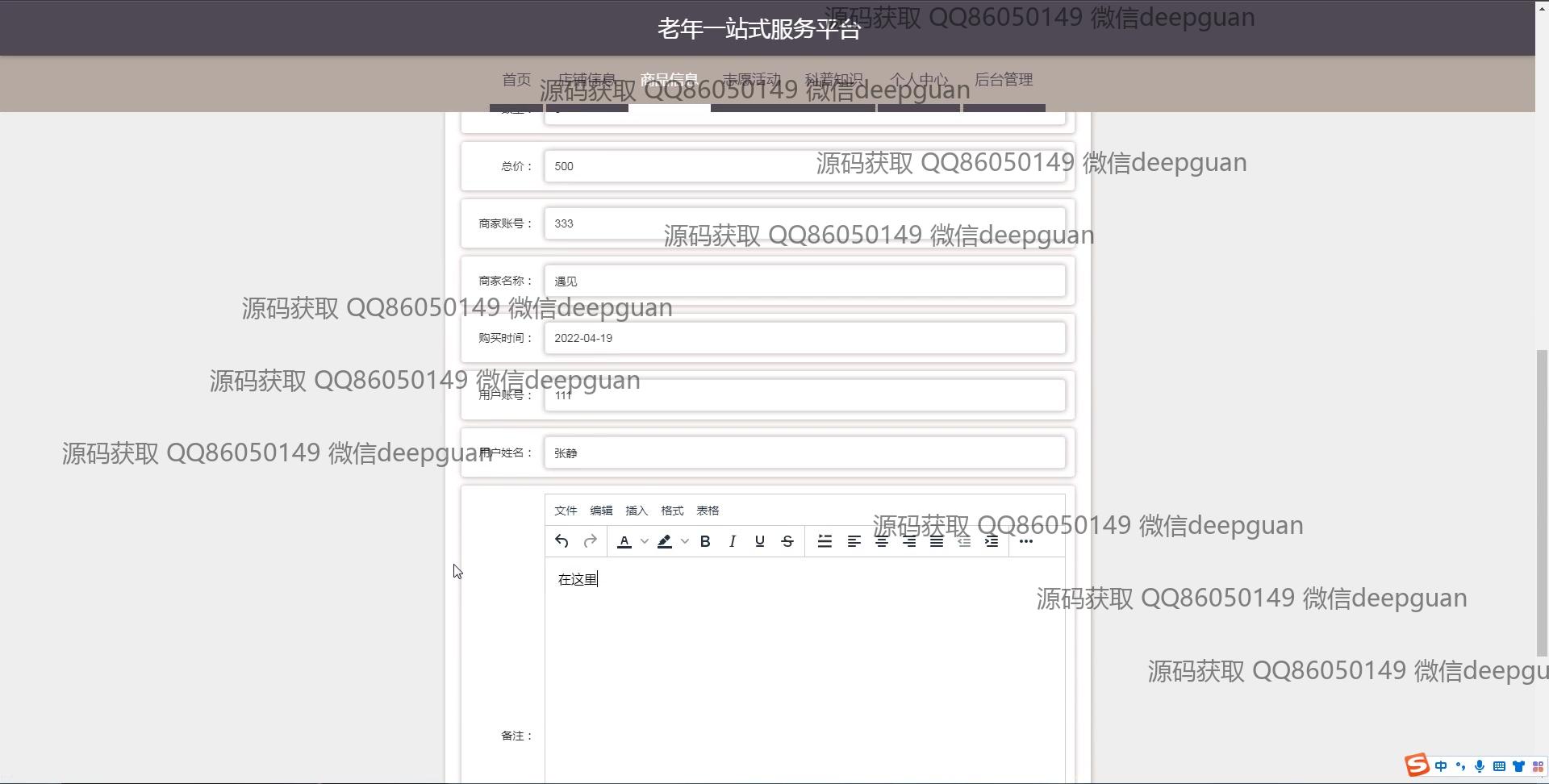 <img src="https://bs-1329754181.cos.ap-shanghai.myqcloud.com/wx.jpg" alt="二维码" style="display: block; margin: 0 auto;" width="200px"> <p><h3 align="center">获取完整代码与数据库文件 + 微信:cai998818 QQ: 86050149</h3></p> <p><h3 align="center">毕业设计代做、论文代做,找我!可定制,包查重包通过!</h3></p> <p><h3 align="center">可帮忙远程部署 包运行成功!提供远程部署、修改代码、设计文档指导、代码讲解等服务!</h3></p>功能介绍(完整见运行截图)