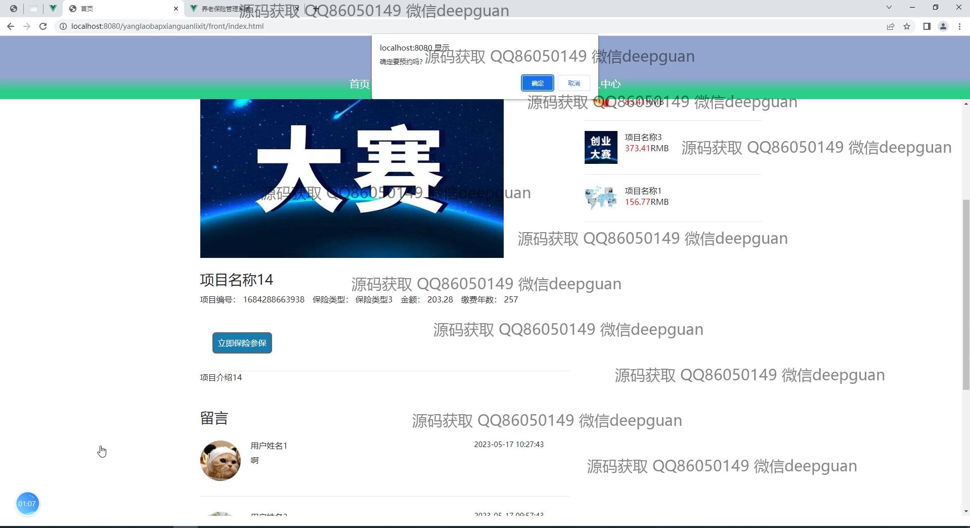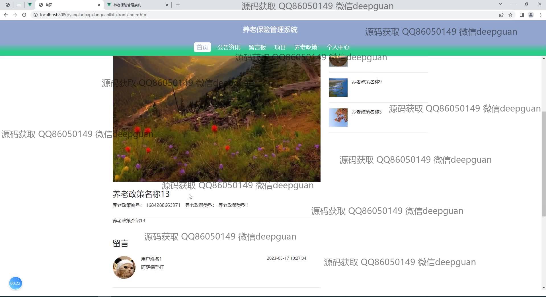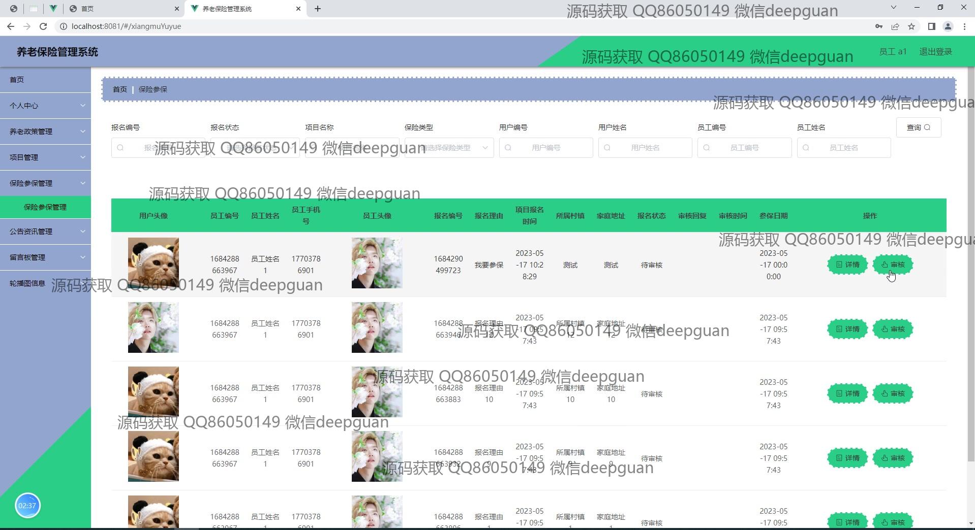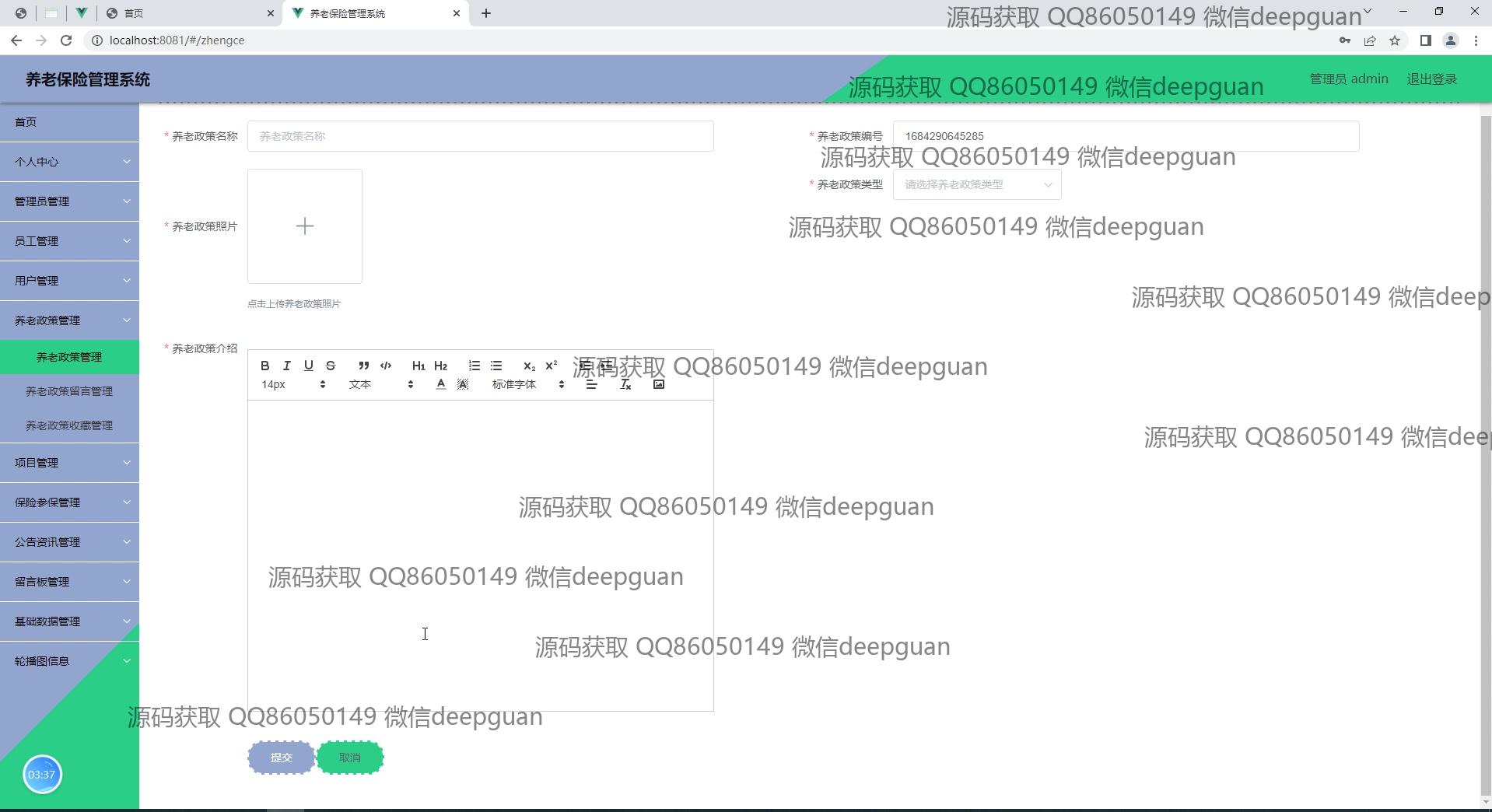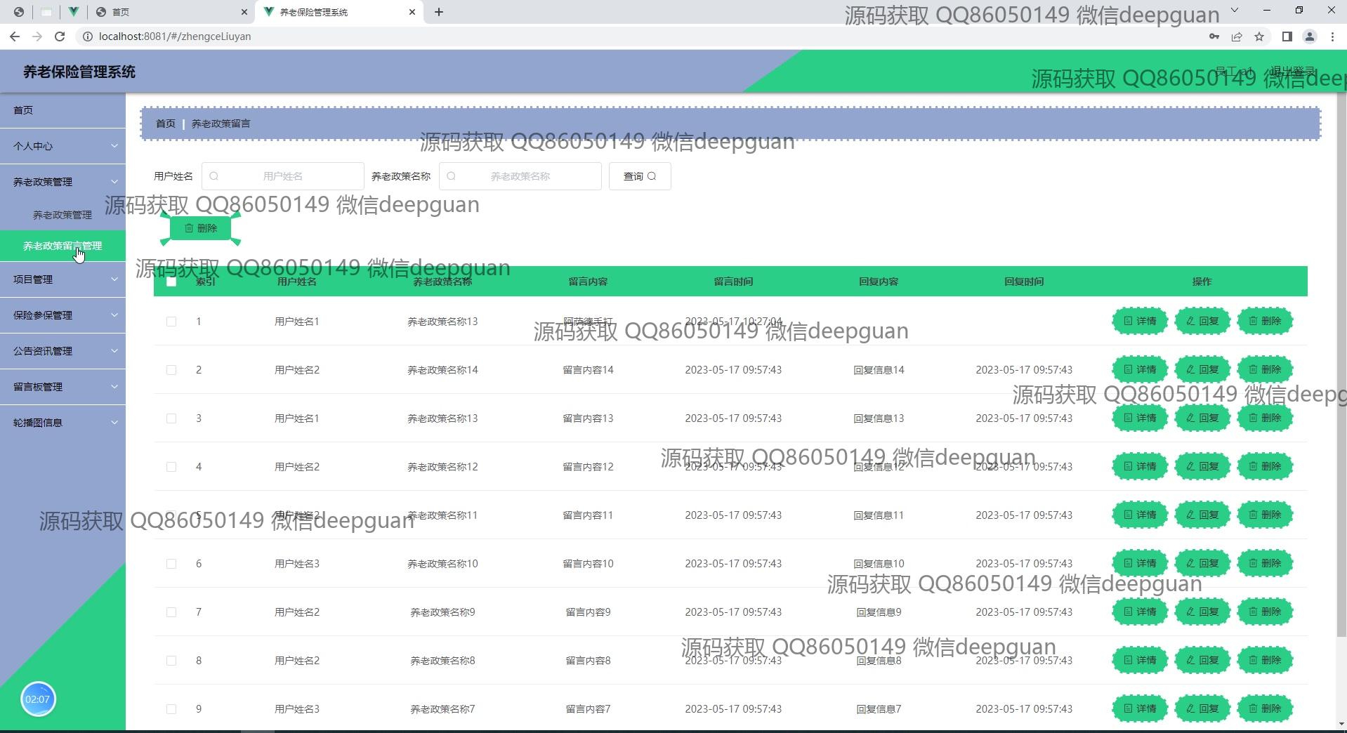 养老保险管理系统:角色分为管理员、员工;功能包括员工信息登记、用户登录、项目管理、公告资讯、留言管理、养老政策查询、保险类型管理、缴费记录查看,提供简洁直观的管理后台界面以提高管理效率。 --计算机毕业设计源码;毕设源码;java毕业设计源码