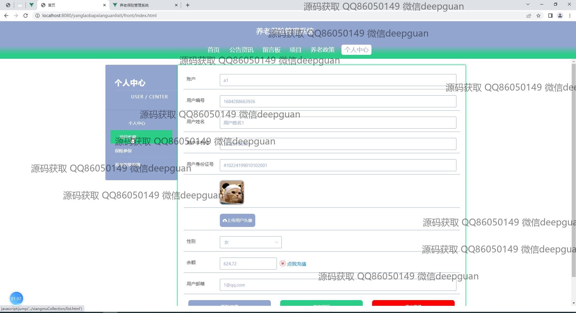 用户:基本功能包括登录、注册,并可修改个人中心的信息,如账户头像、用户名和手机号。用户可以浏览网站首页,查看公告资讯和养老政策;在系统中查询和查看养老保险项目的相关信息,并可通过留言板提问咨询。用户还可以在个人中心管理个人的保险信息和查看相关报表。