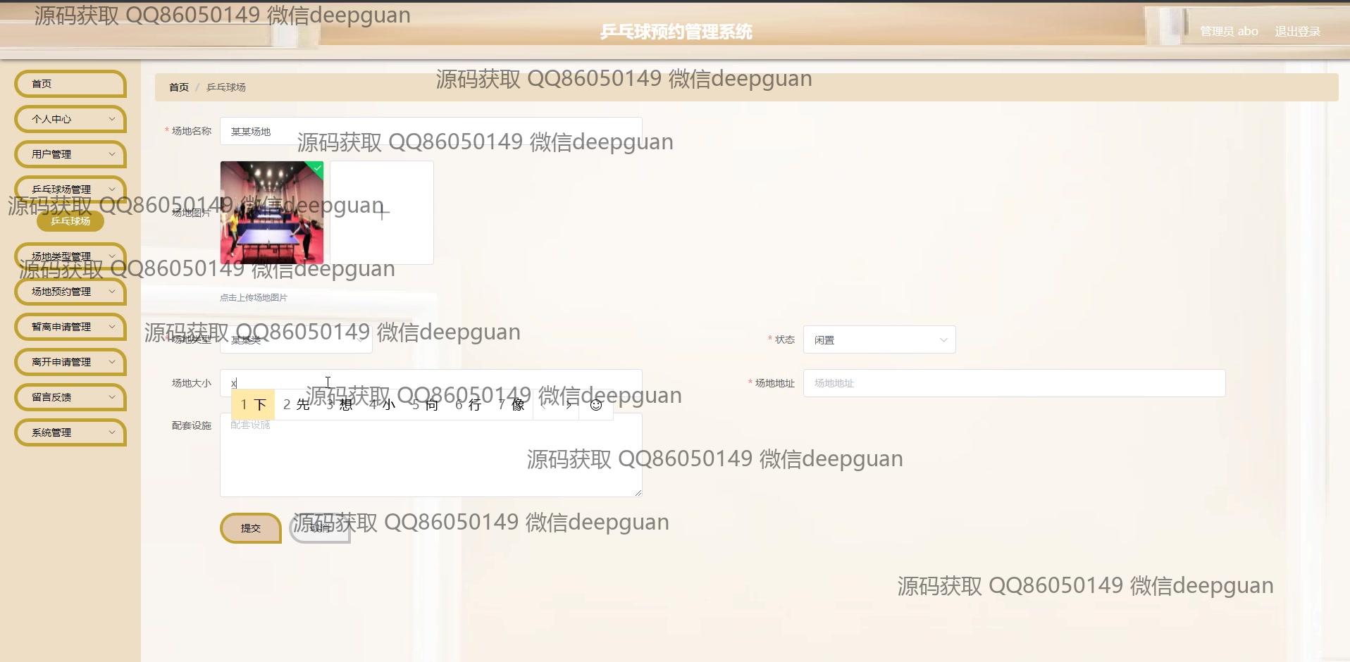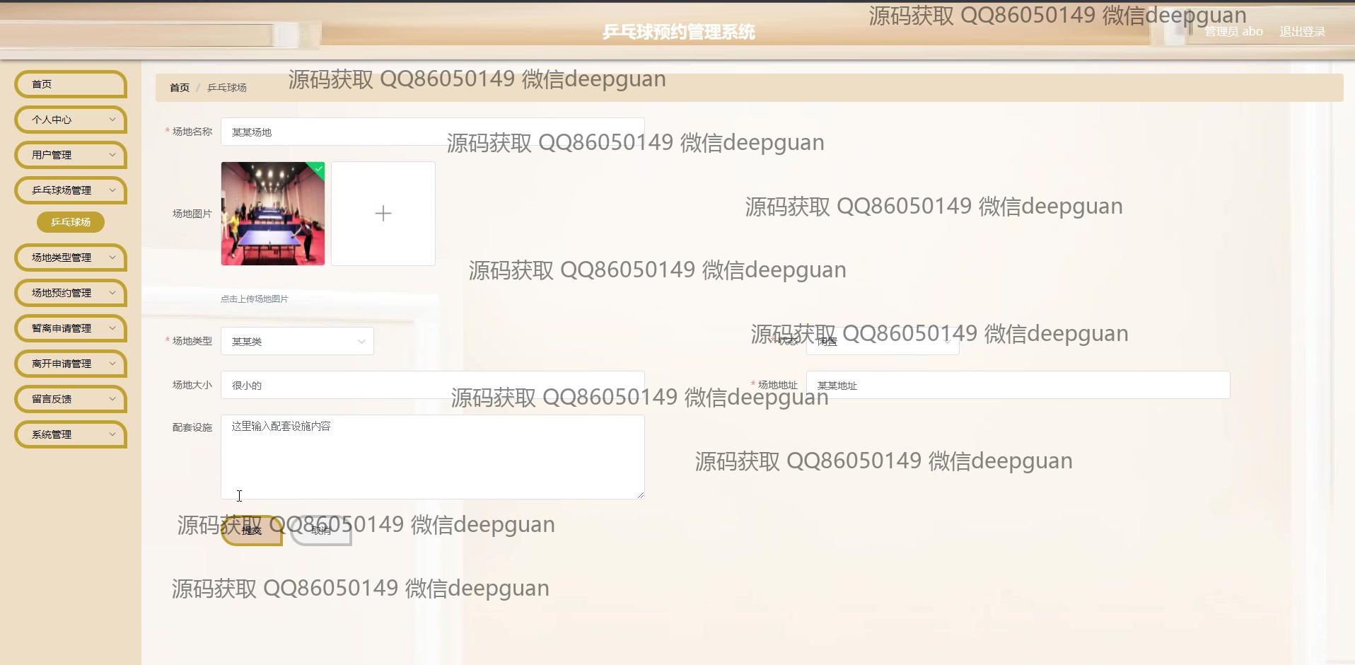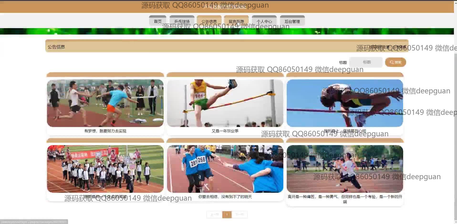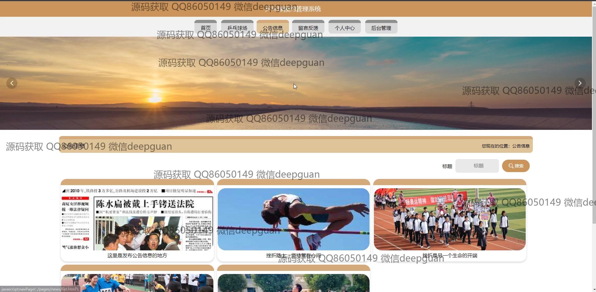 乒乓球预约管理系统:提供管理员和用户角色;功能包括场地预约、用户管理、留言反馈、公告信息、系统管理,提升用户互动和场地管理效率。 --计算机毕业设计源码;毕设源码;java毕业设计源码