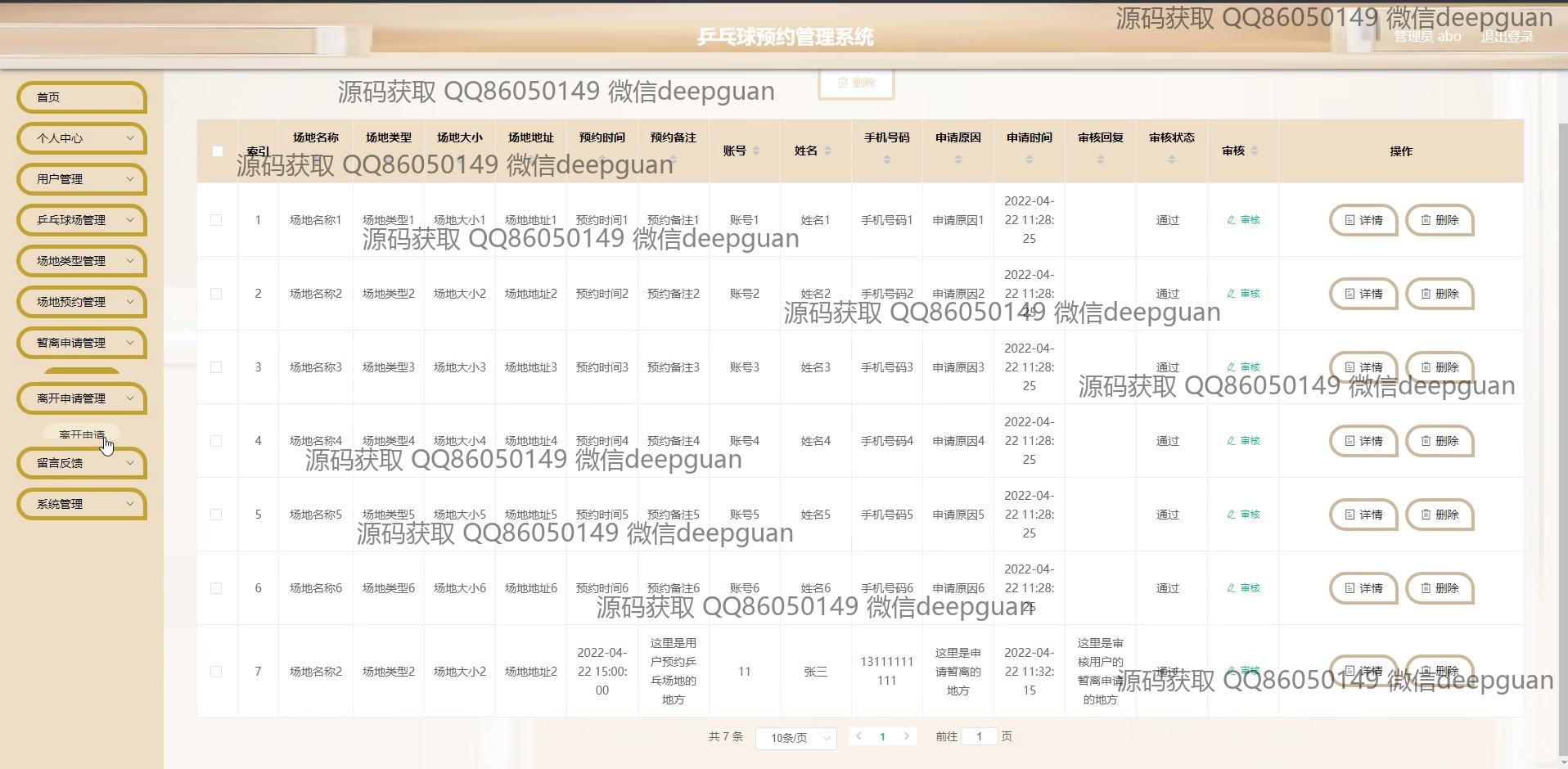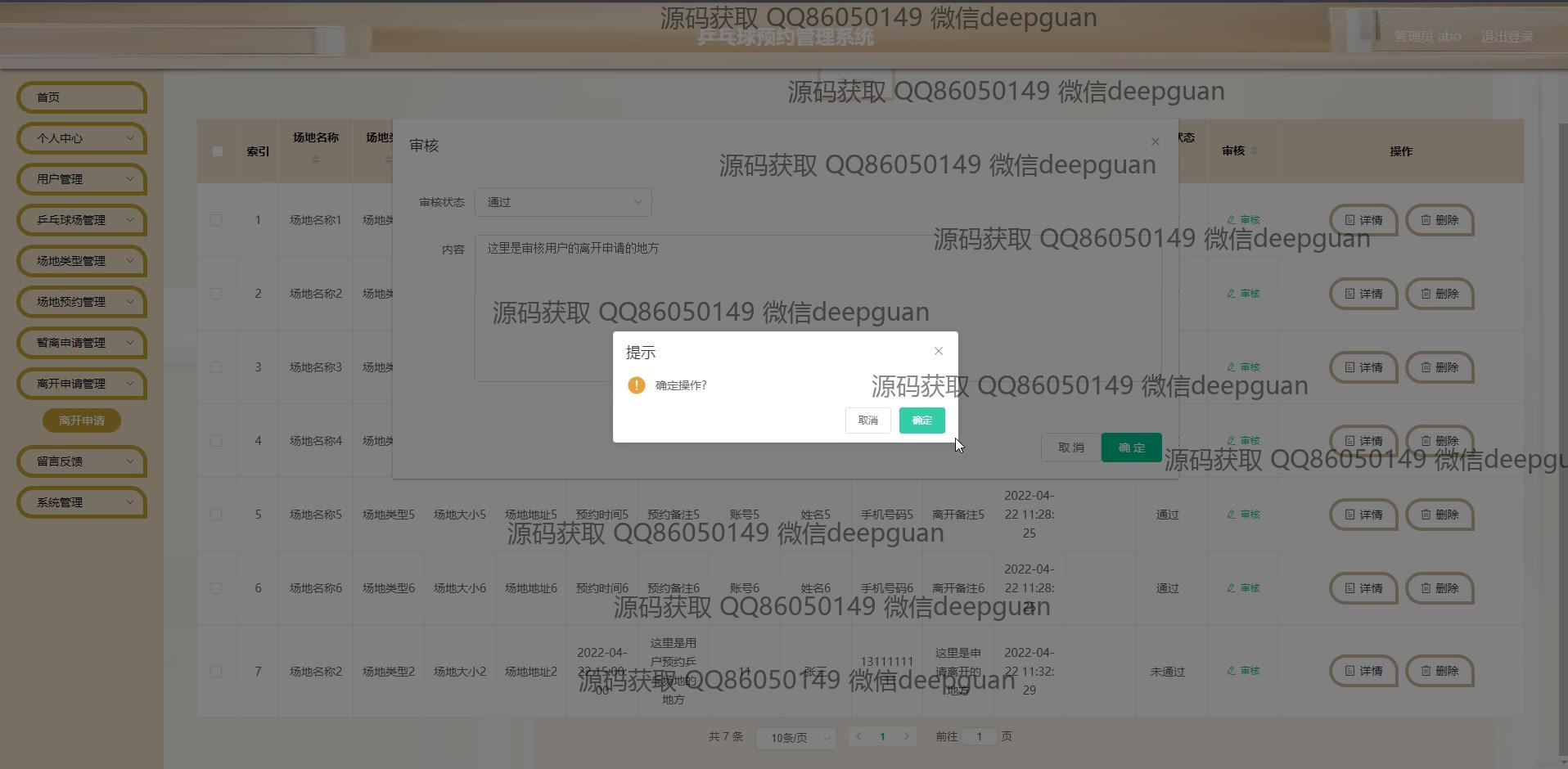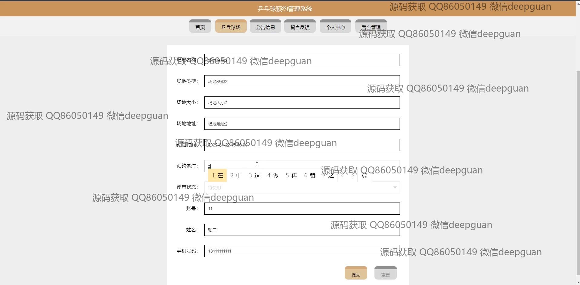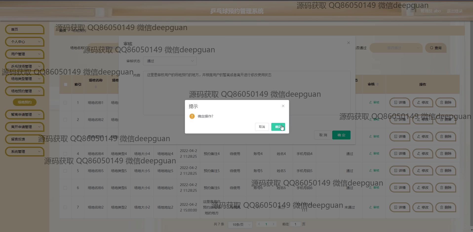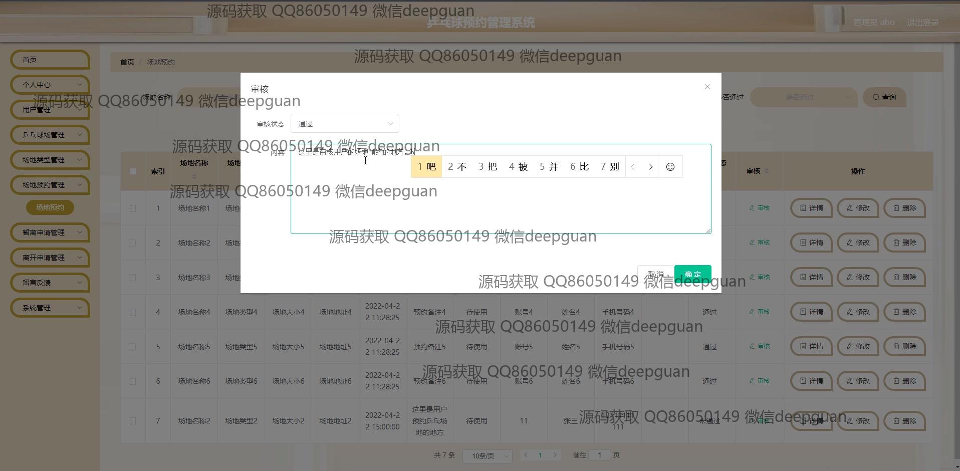 乒乓球预约管理系统:提供管理员和用户角色;功能包括场地预约、用户管理、留言反馈、公告信息、系统管理,提升用户互动和场地管理效率。 --计算机毕业设计源码;毕设源码;java毕业设计源码