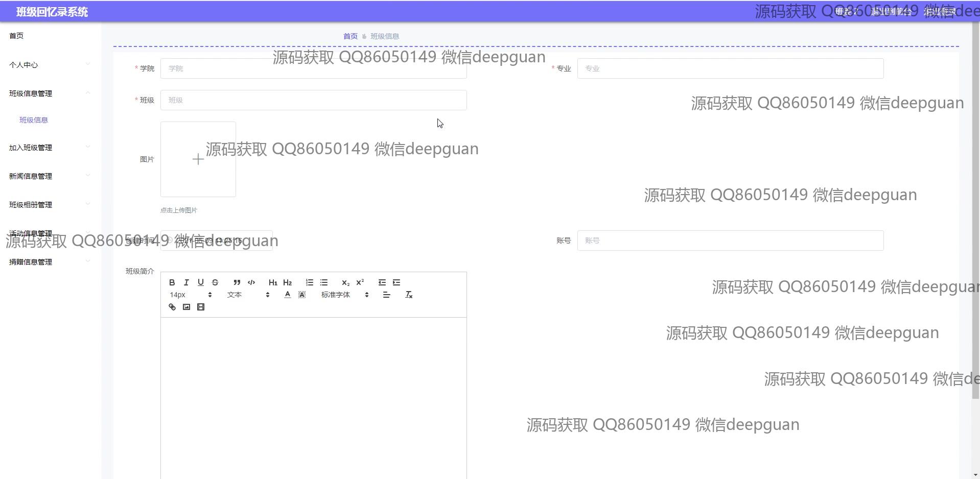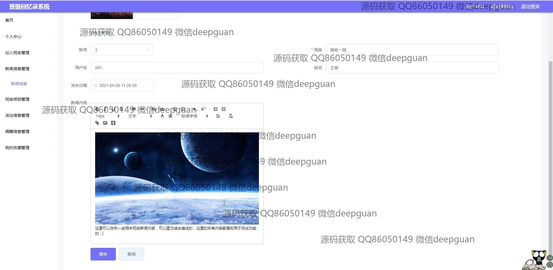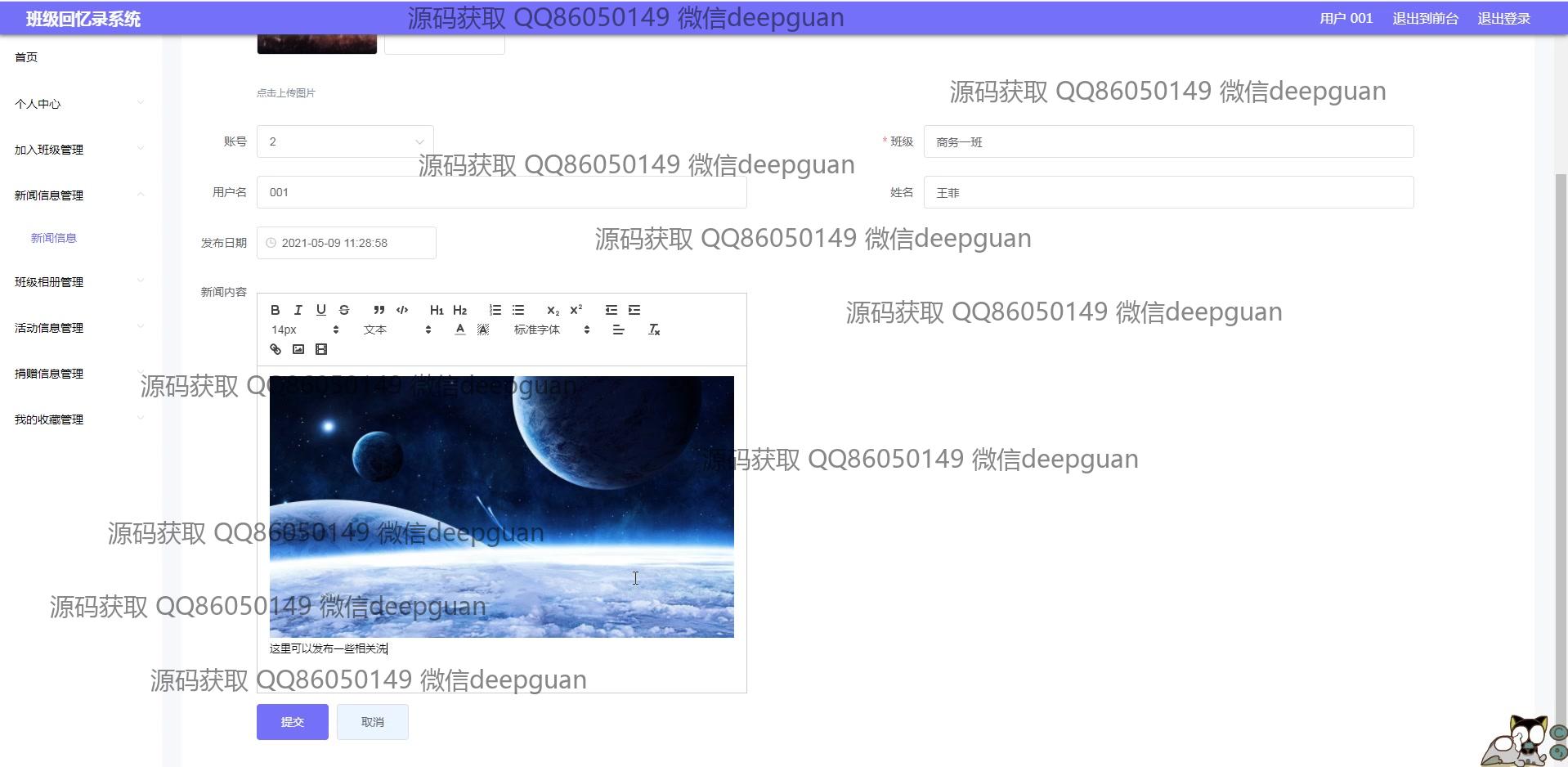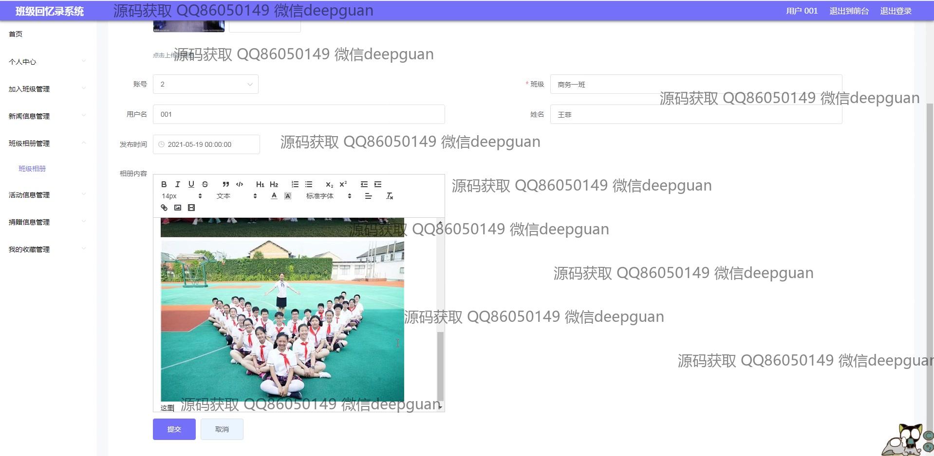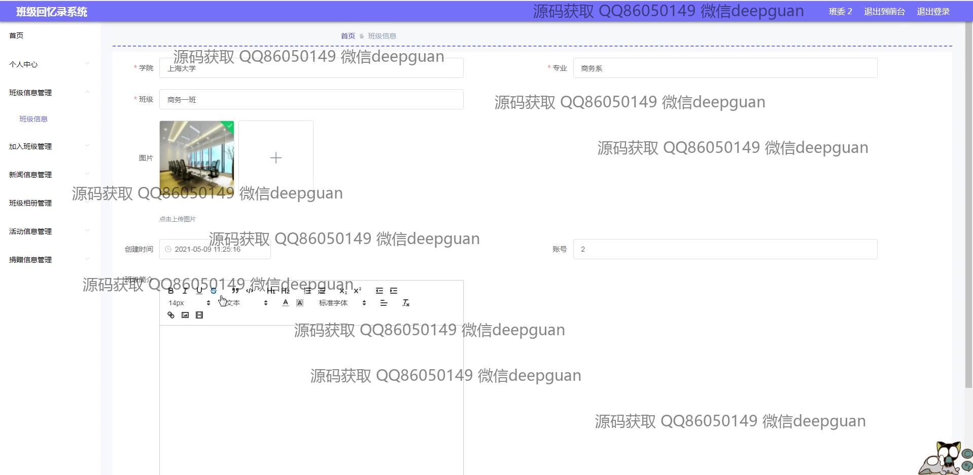 海滨学院班级回忆录系统:用户可以通过多功能模块进行班级信息管理、新闻发布、活动记录、相册和捐赠信息管理,支持富文本编辑与图片上传,实现便捷的班级回忆与互动分享。 --计算机毕业设计源码;毕设源码;java毕业设计源码