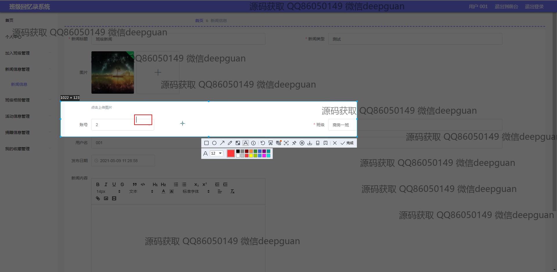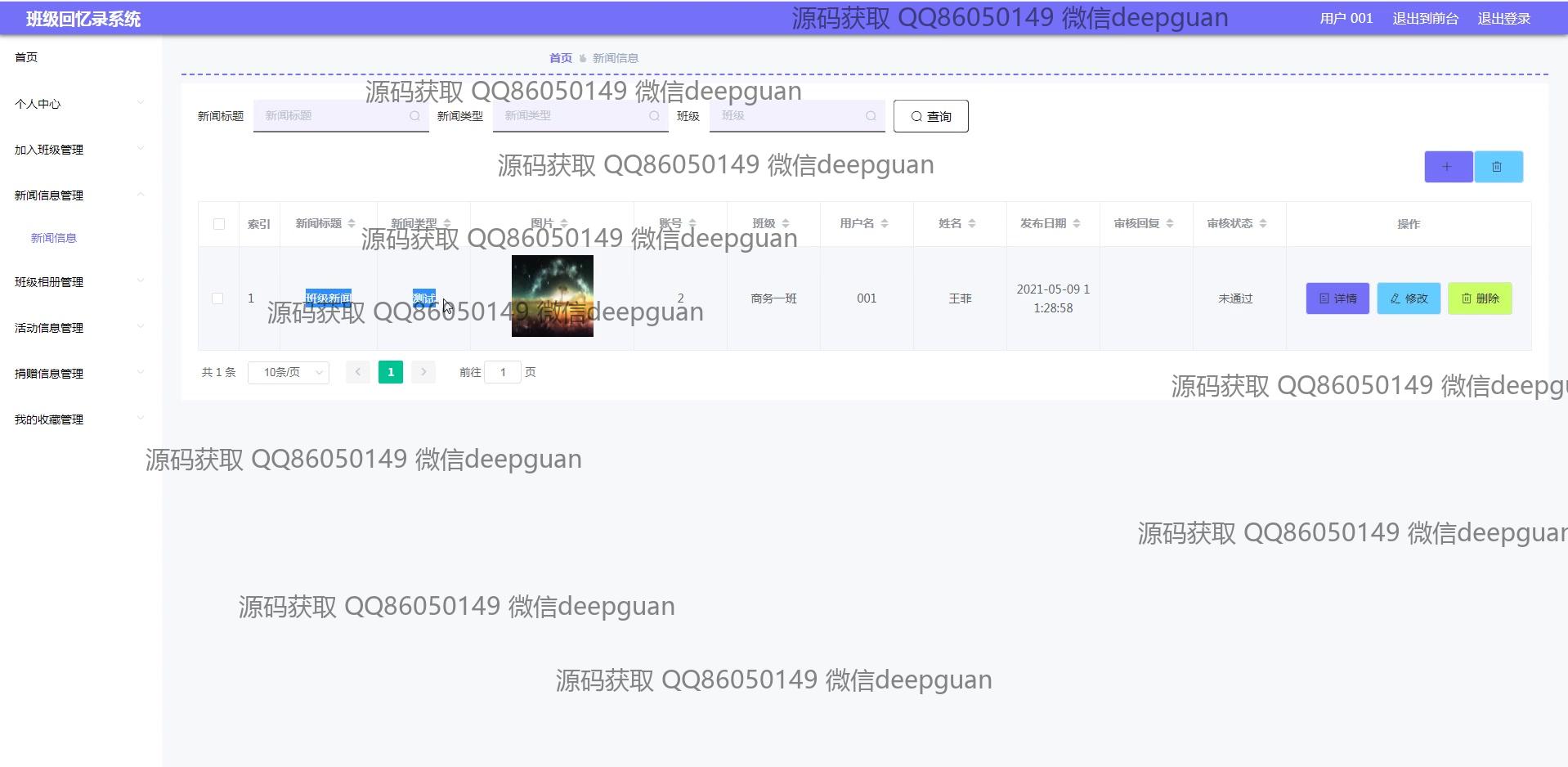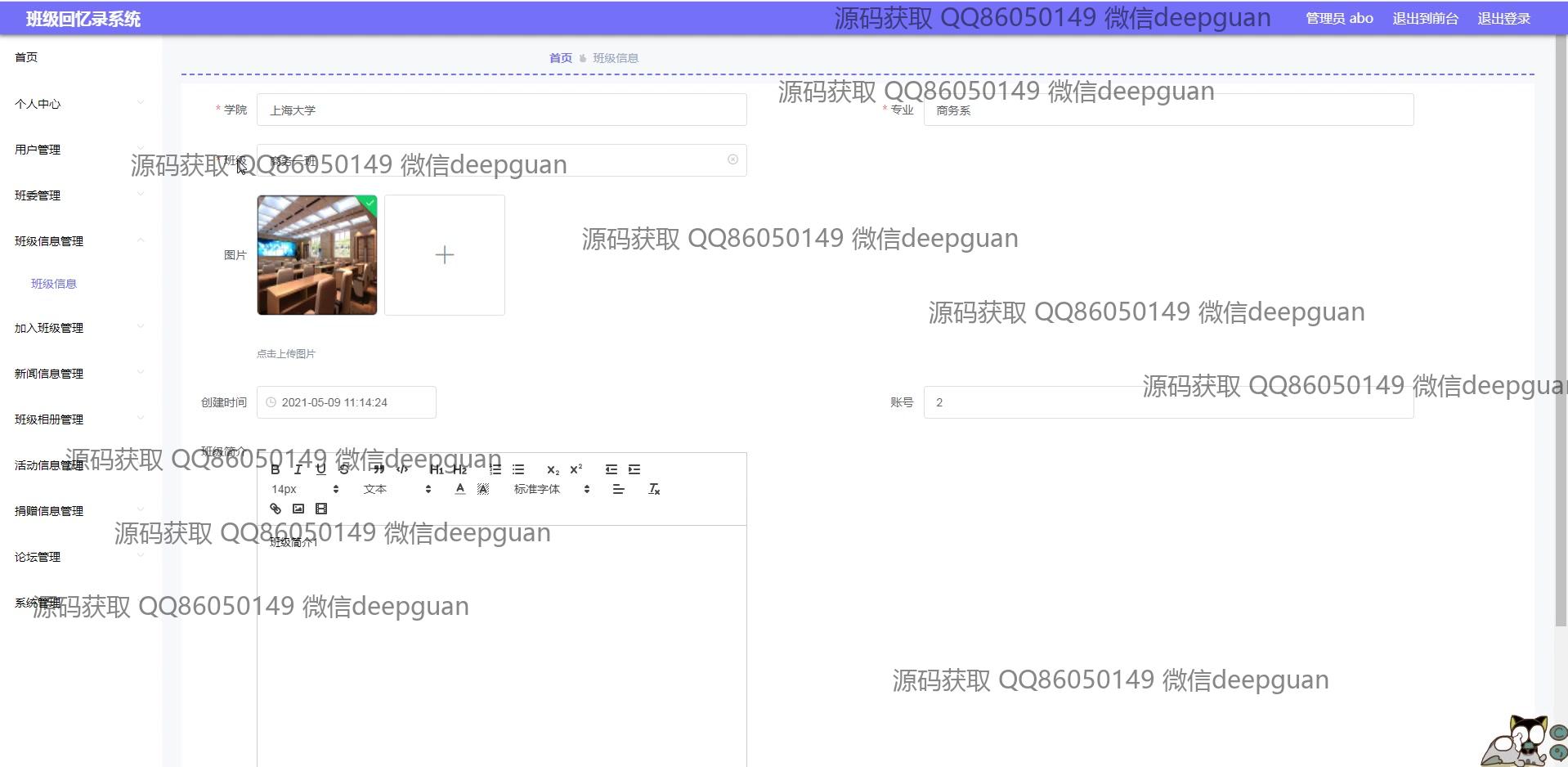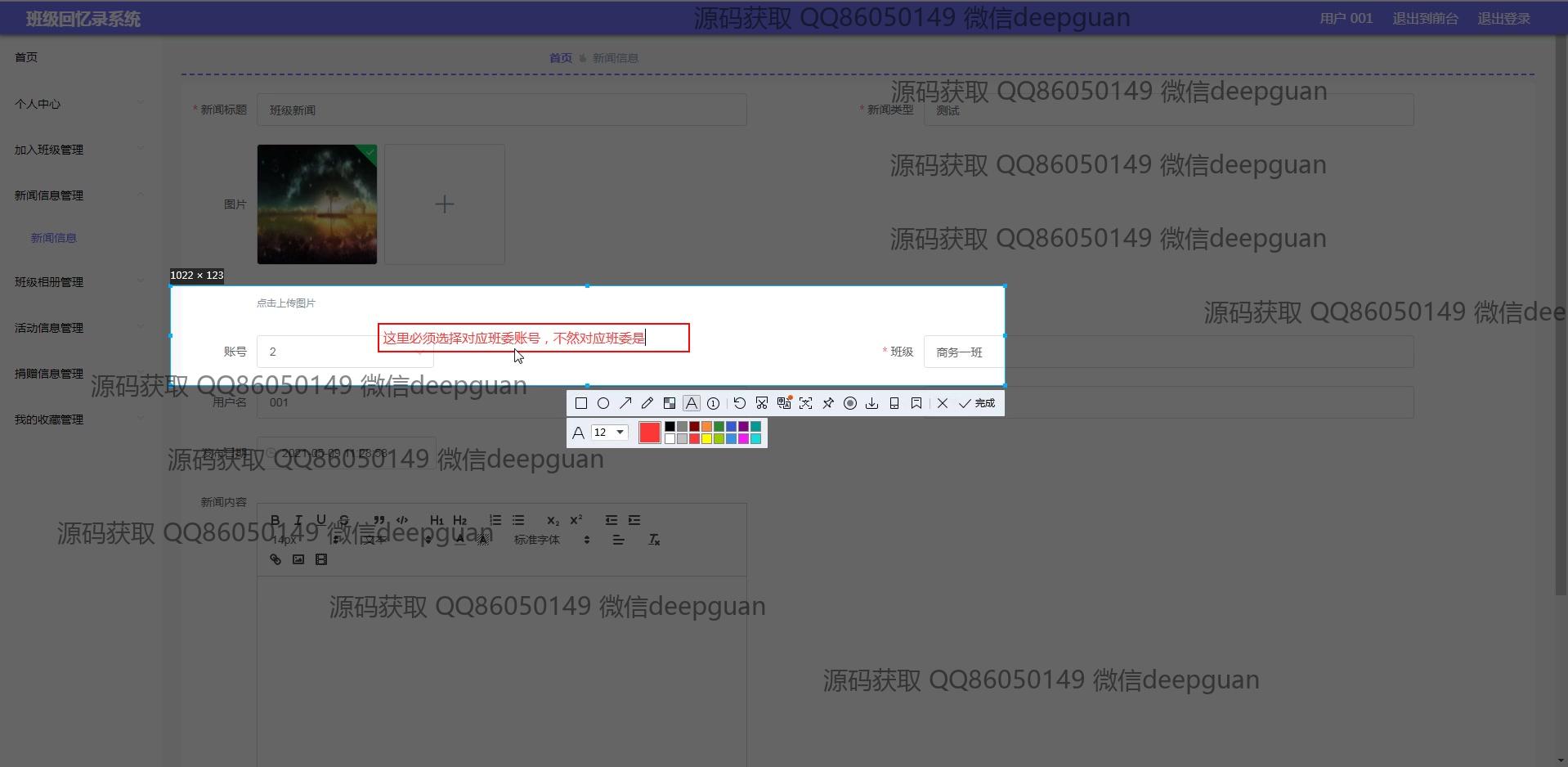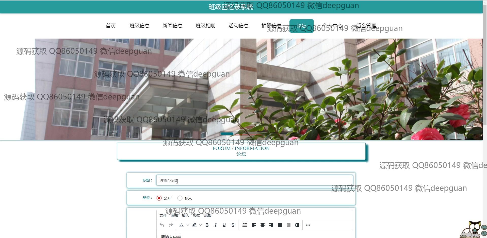 海滨学院班级回忆录系统:用户可以通过多功能模块进行班级信息管理、新闻发布、活动记录、相册和捐赠信息管理,支持富文本编辑与图片上传,实现便捷的班级回忆与互动分享。 --计算机毕业设计源码;毕设源码;java毕业设计源码