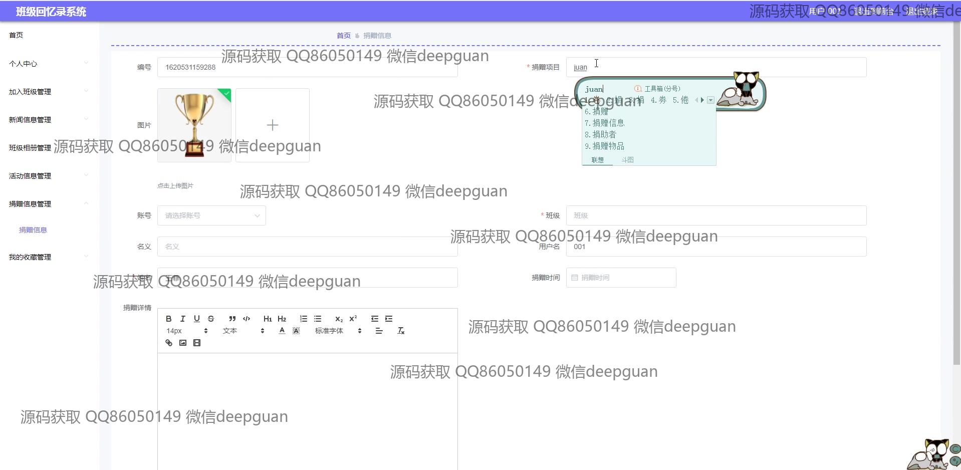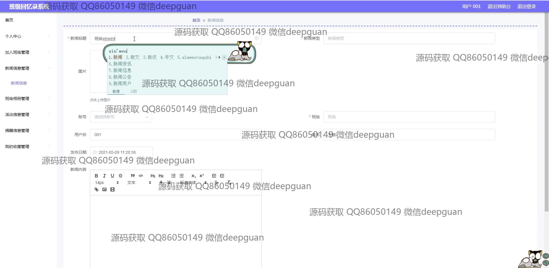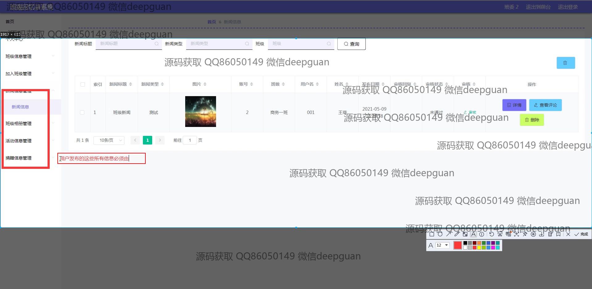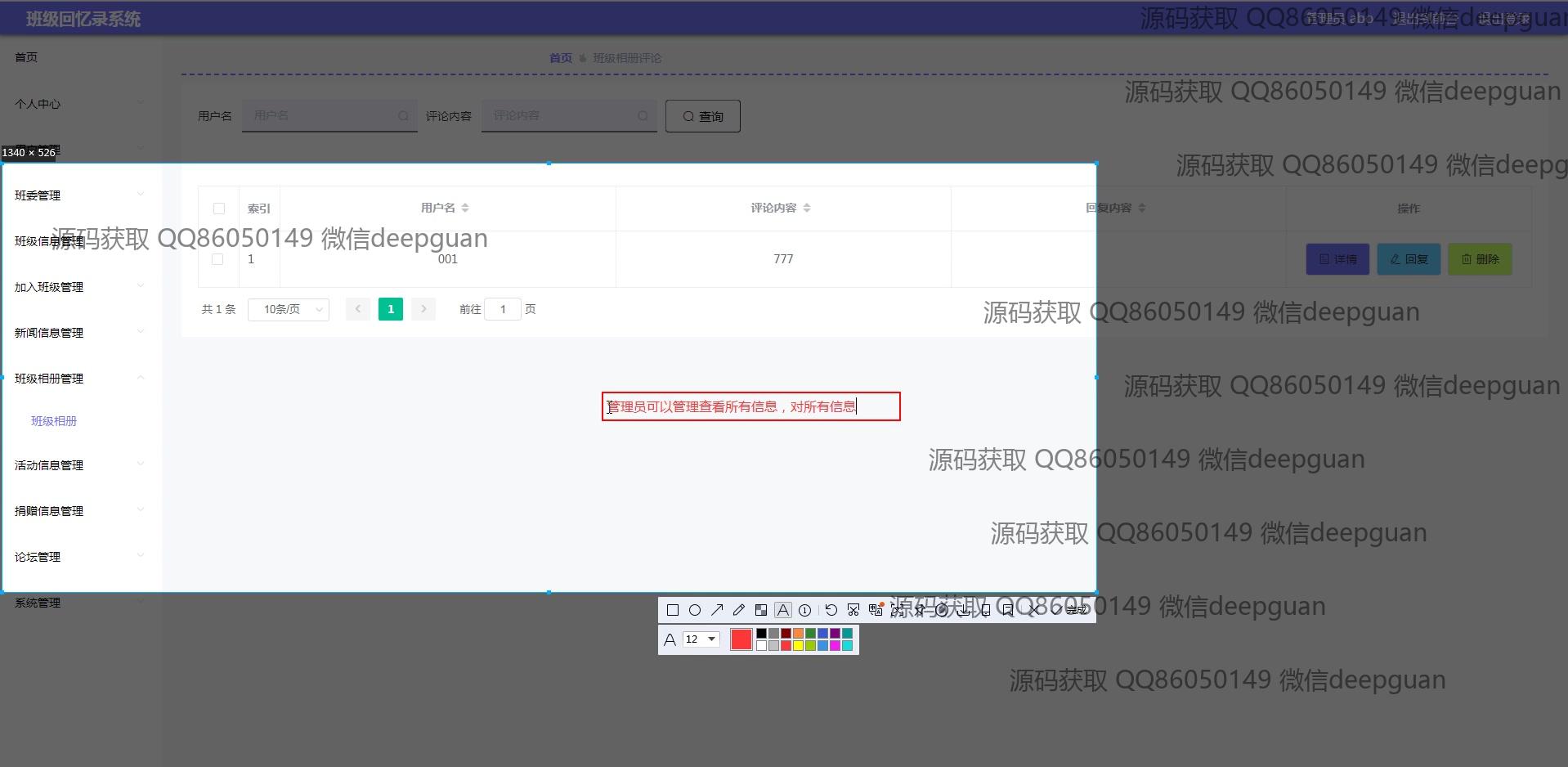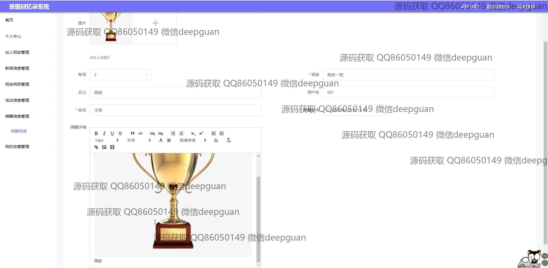 海滨学院班级回忆录系统:用户可以通过多功能模块进行班级信息管理、新闻发布、活动记录、相册和捐赠信息管理,支持富文本编辑与图片上传,实现便捷的班级回忆与互动分享。 --计算机毕业设计源码;毕设源码;java毕业设计源码