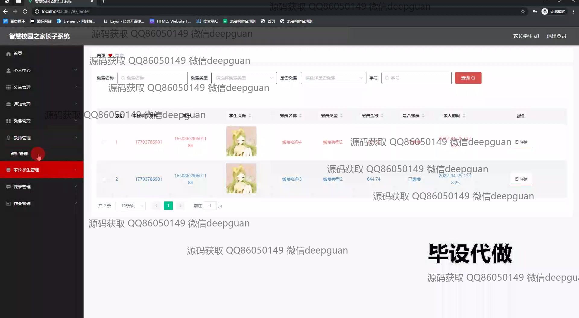 智慧校园之家长子系统_管理系统_毕业设计源码