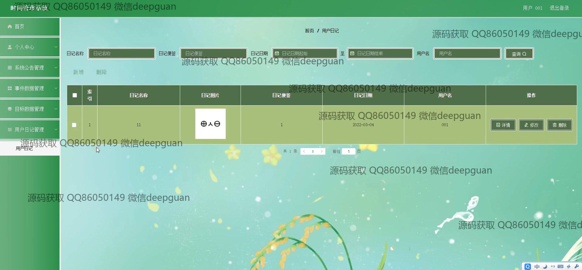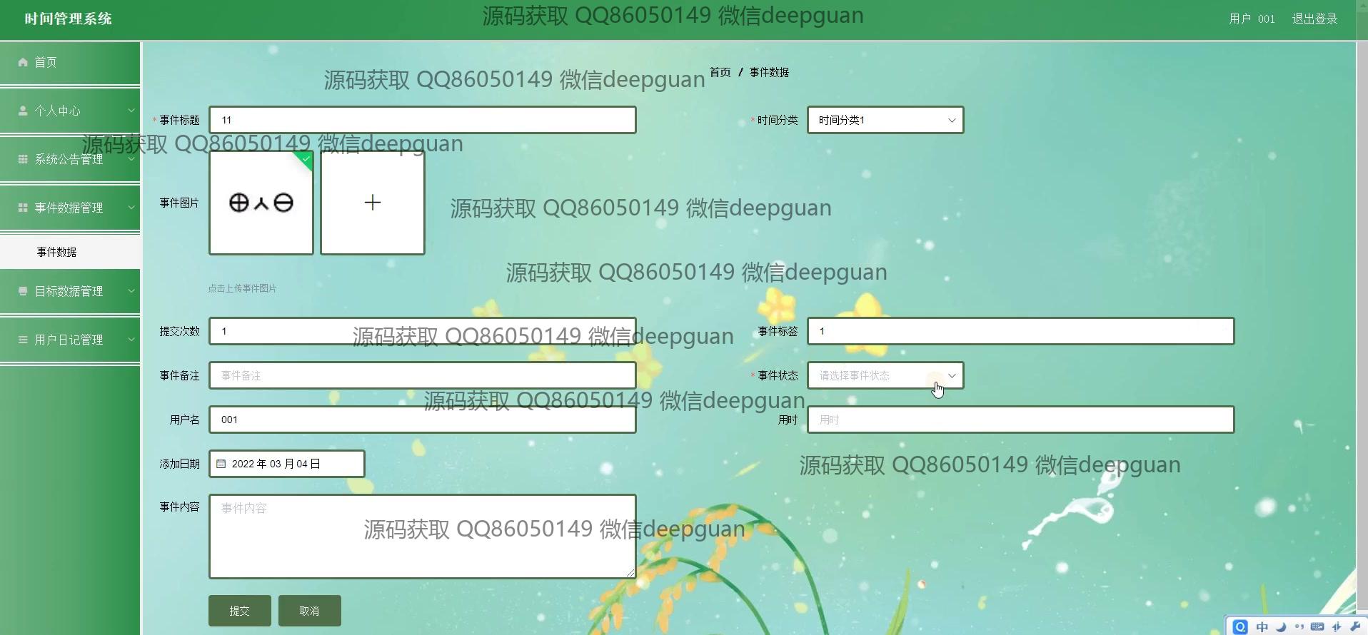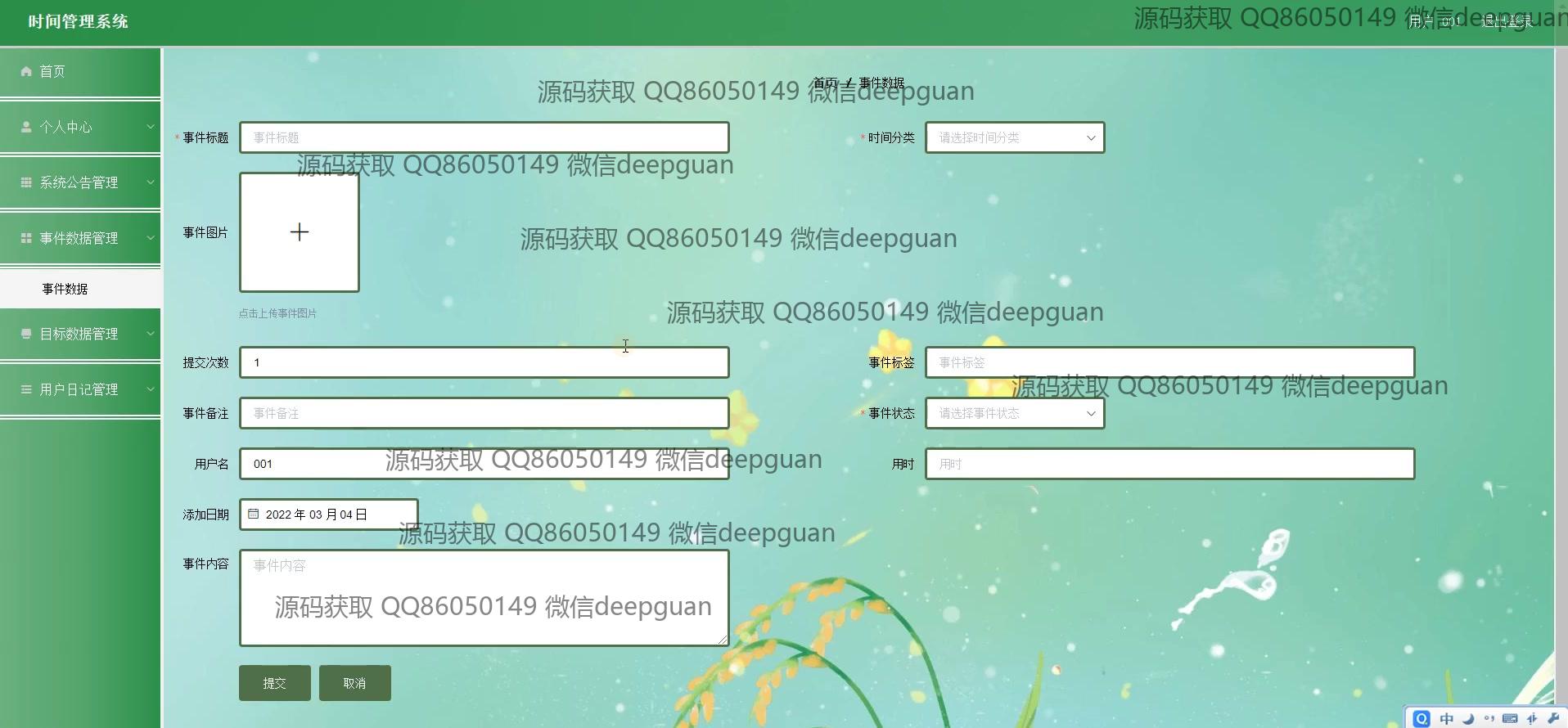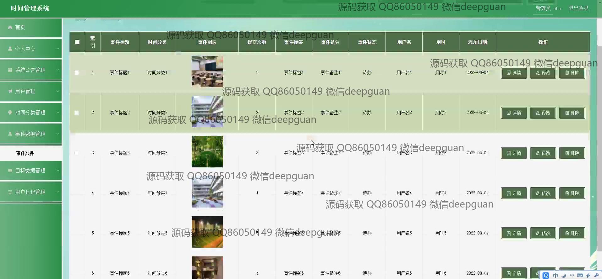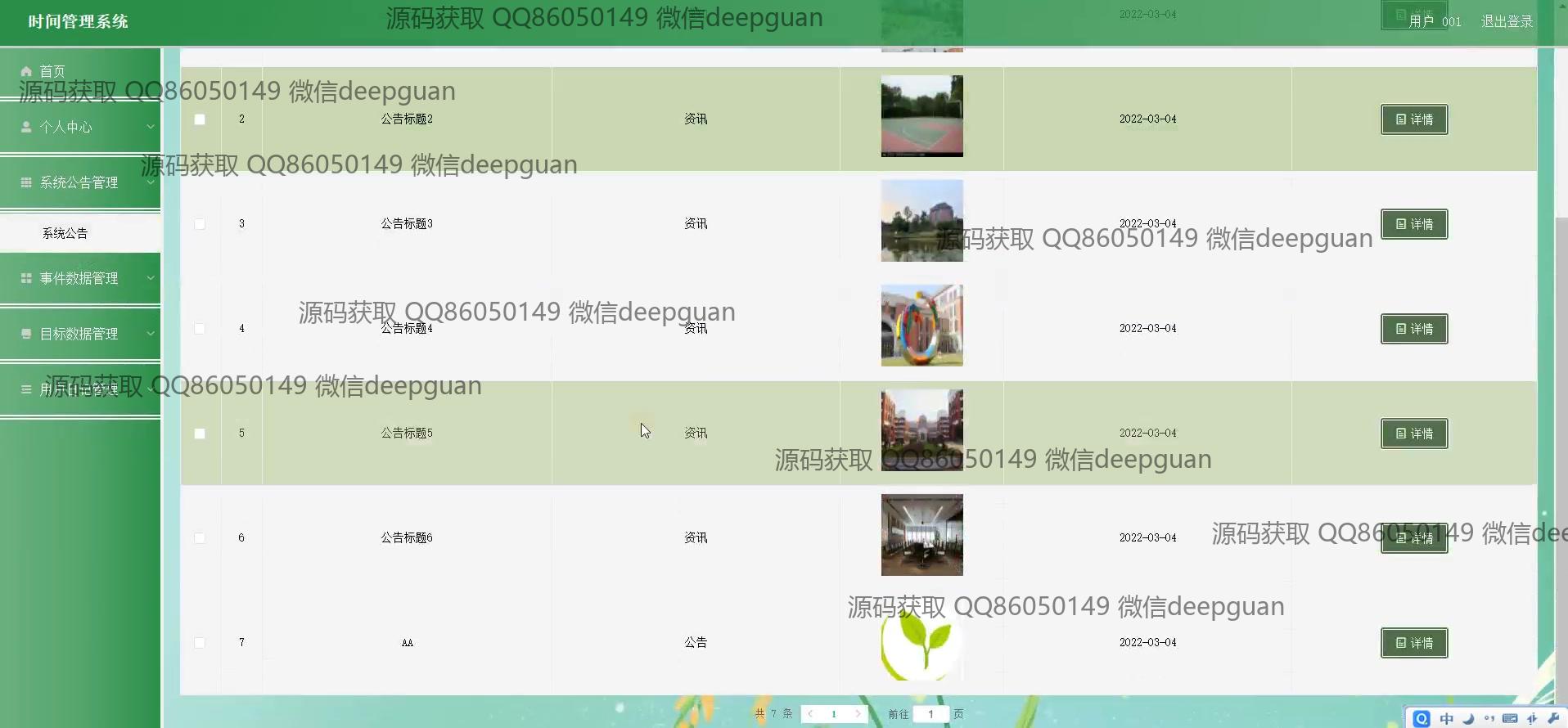 时间管理系统:角色分为管理员、用户;用户注册、任务管理、公告发布、用户信息管理等功能,简化日常事件管理,提高工作效率,界面简洁,用户体验友好。 --计算机毕业设计源码;毕设源码;java毕业设计源码