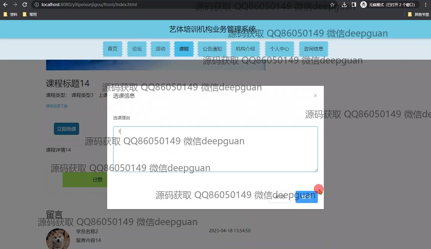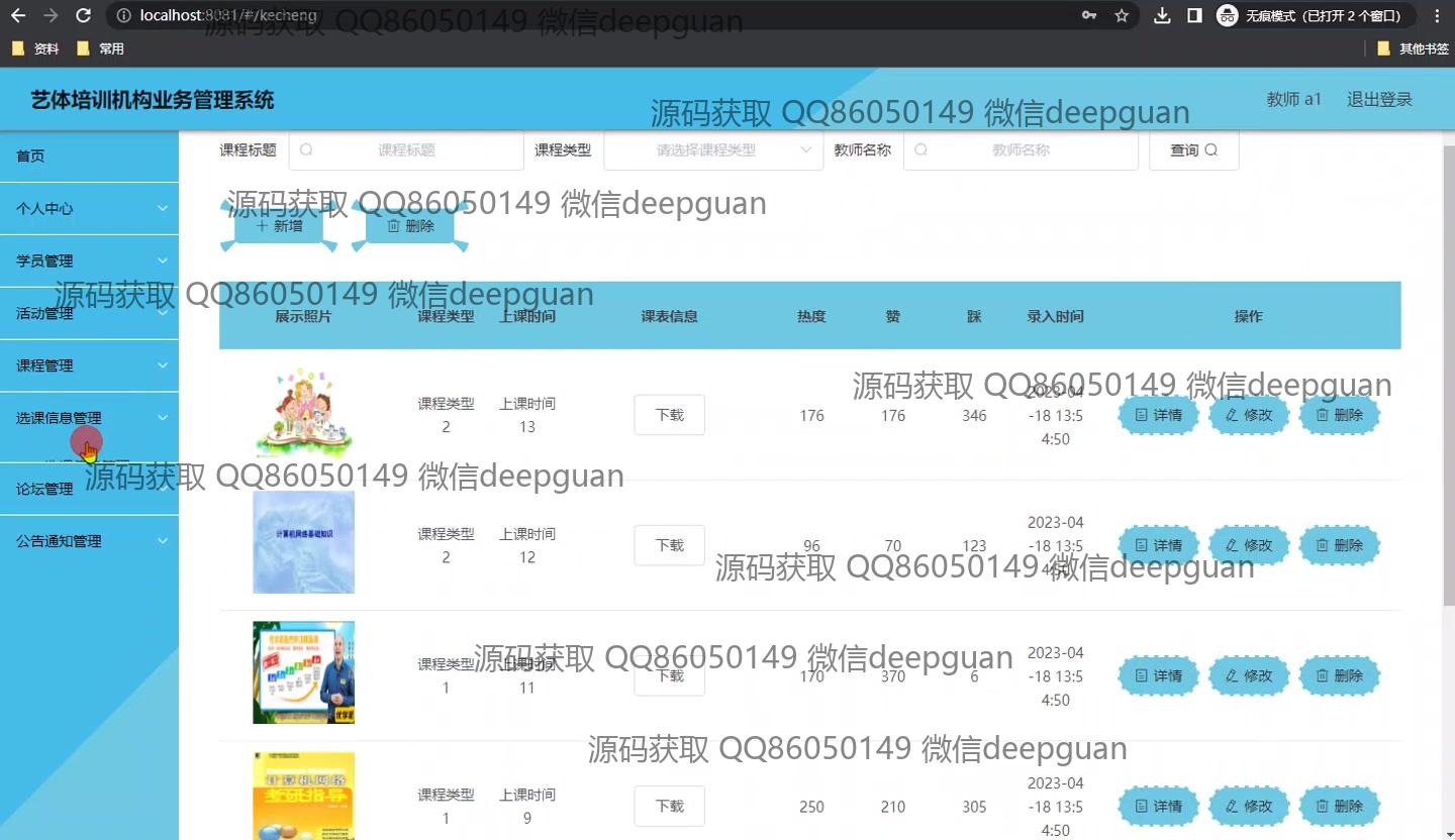 艺体培训机构业务管理系统_管理系统_毕业设计源码