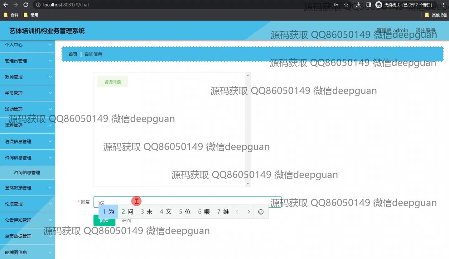 <img src="https://bs-1329754181.cos.ap-shanghai.myqcloud.com/wx.jpg" alt="二维码" style="display: block; margin: 0 auto;" width="200px"> <p><h3 align="center">获取完整代码与数据库文件 + 微信:cai998818 QQ: 86050149</h3></p> <p><h3 align="center">毕业设计代做、论文代做,找我!可定制,包查重包通过!</h3></p> <p><h3 align="center">可帮忙远程部署 包运行成功!提供远程部署、修改代码、设计文档指导、代码讲解等服务!</h3></p>功能介绍(完整见运行截图)