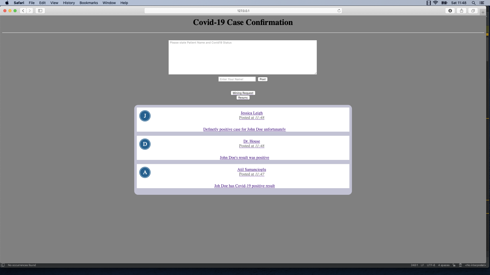 Blockchain Application with Python for simple demonstration. Can be used for safely track medical personnel confirming pandemic cases for patients.