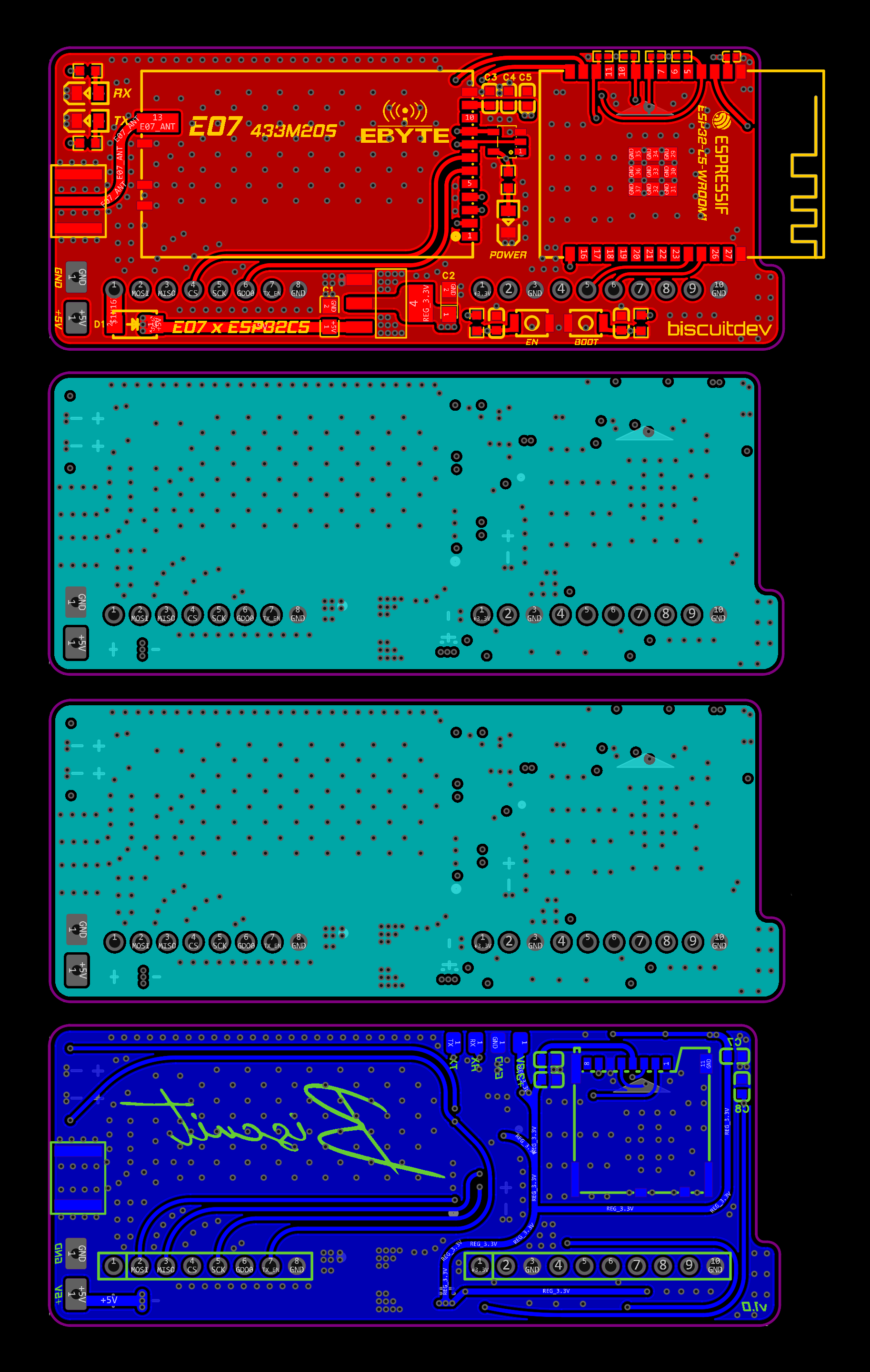 - The RF section layout was designed following common E07 module layout practices and Flipper Zero form factor constraints. The schematic and PCB were designed independently.