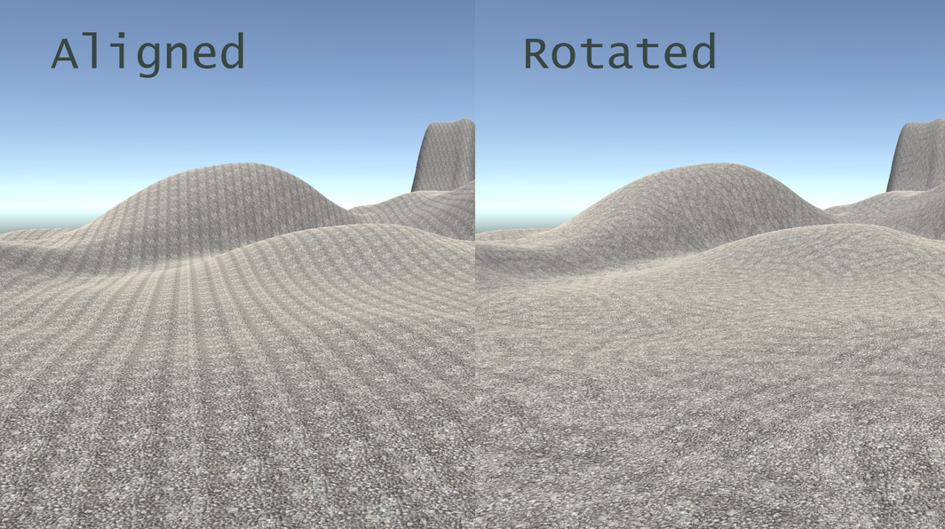 Each domain can be rotated independently, breaking up tiling patterns: