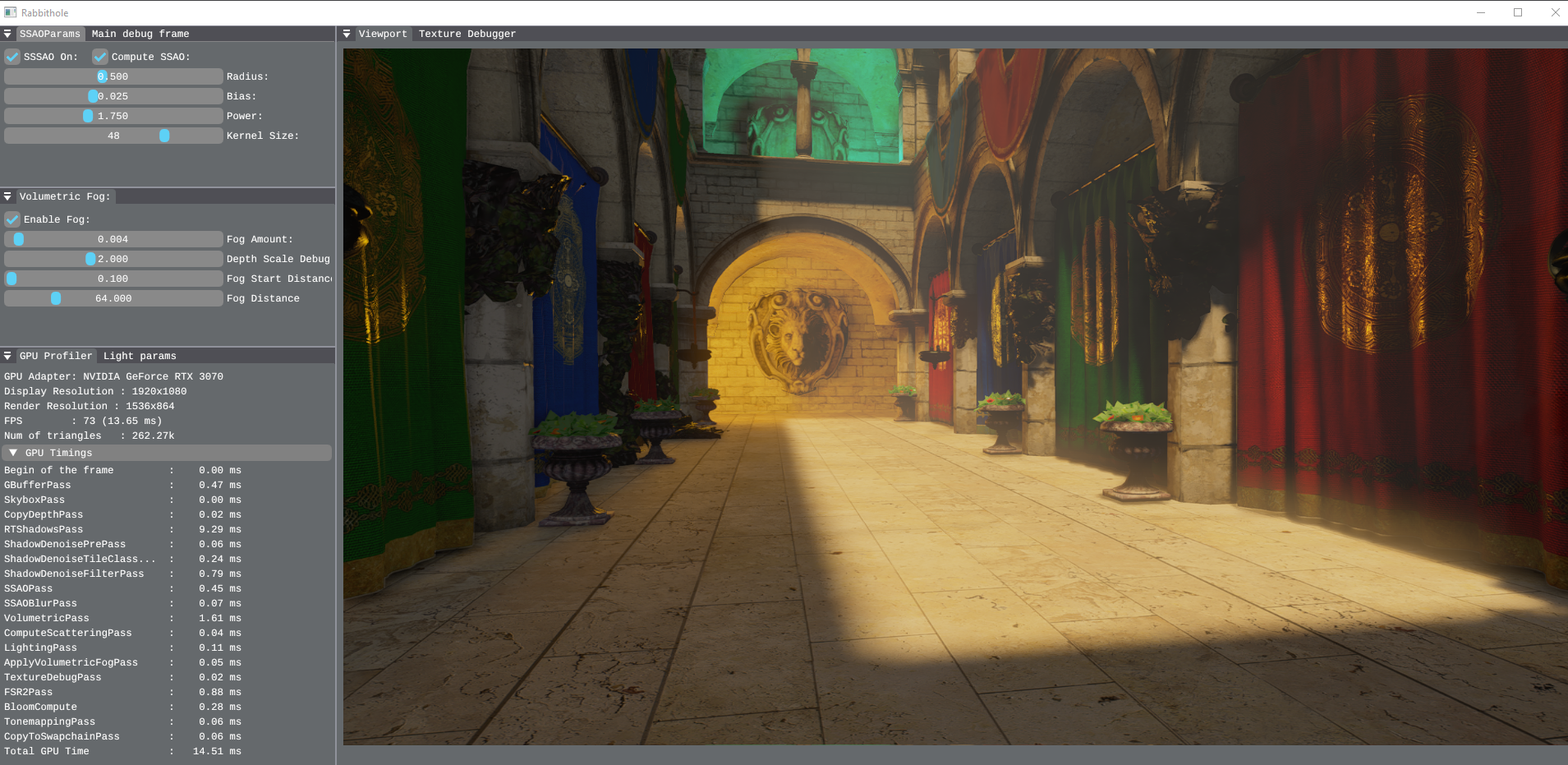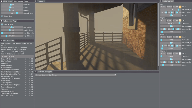 - PBR technique for lighting and tweakable basic SSAO for ambient occlusion