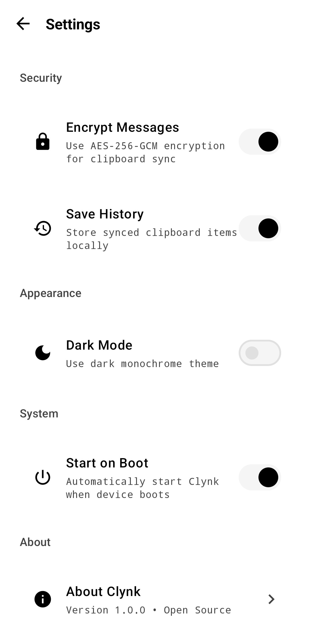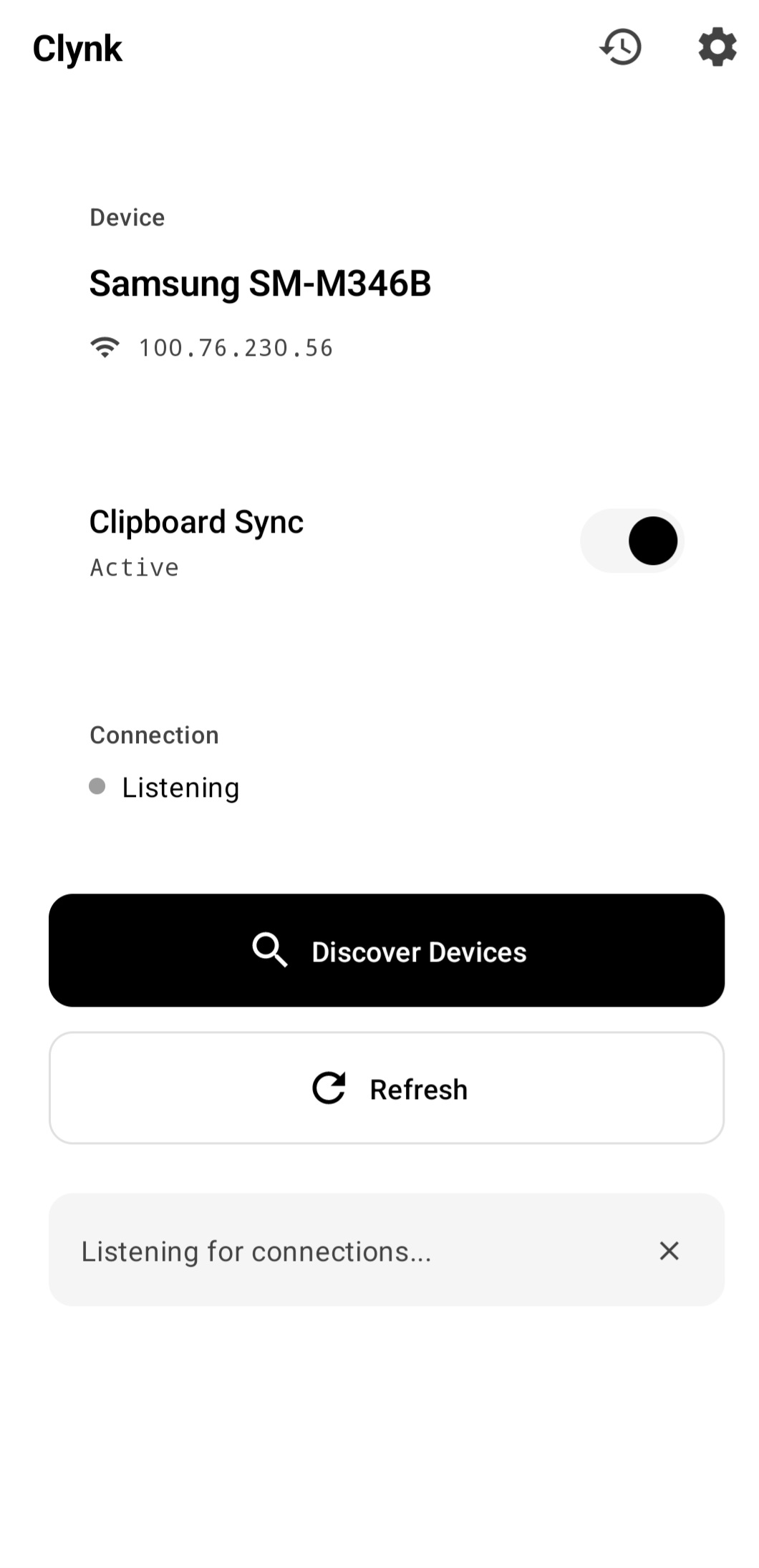 | Device pairing & sync status | Browse clipboard history | Configure app settings |