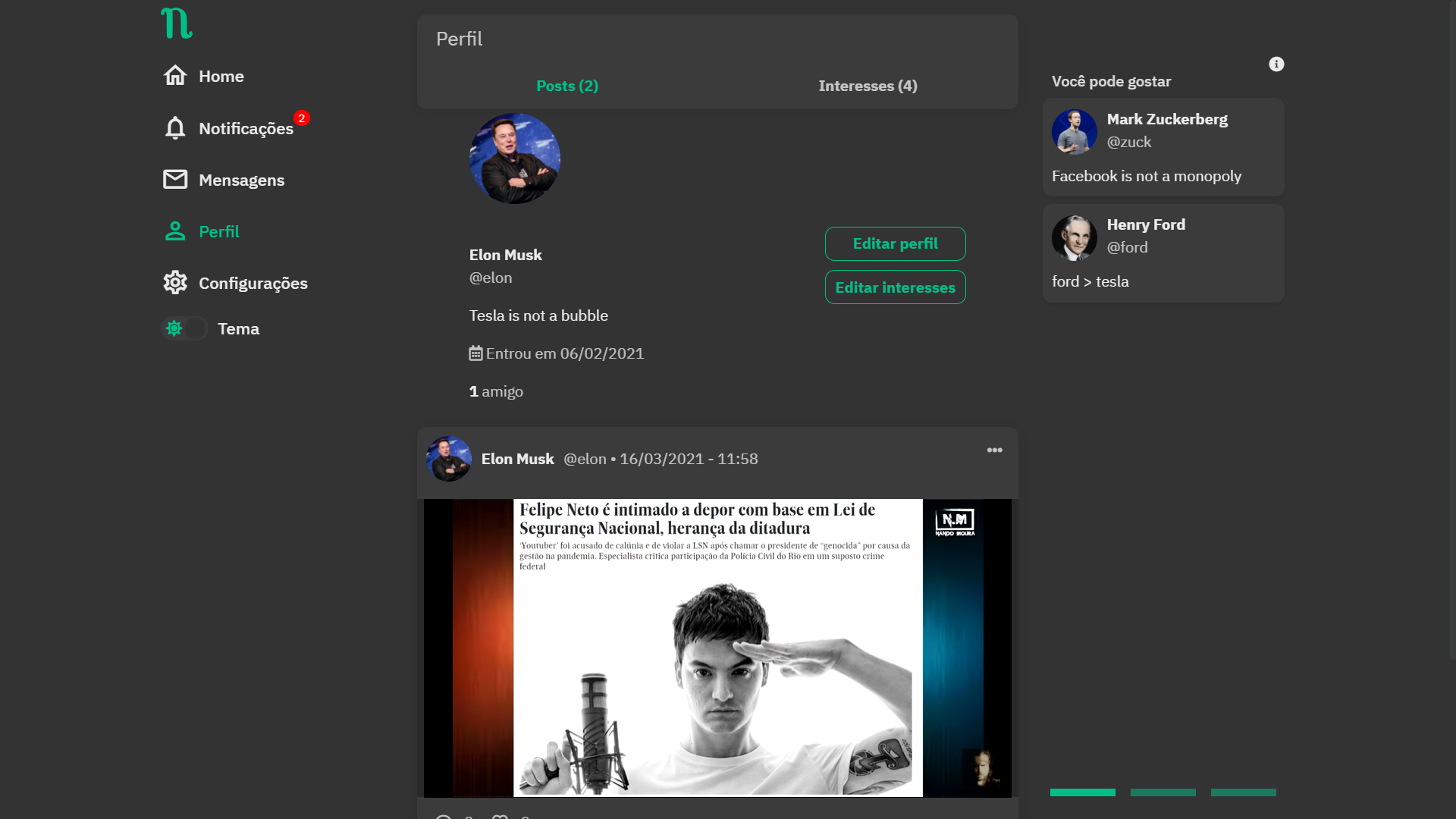 Brazillian social network built with Django Rest Framework and React.js.