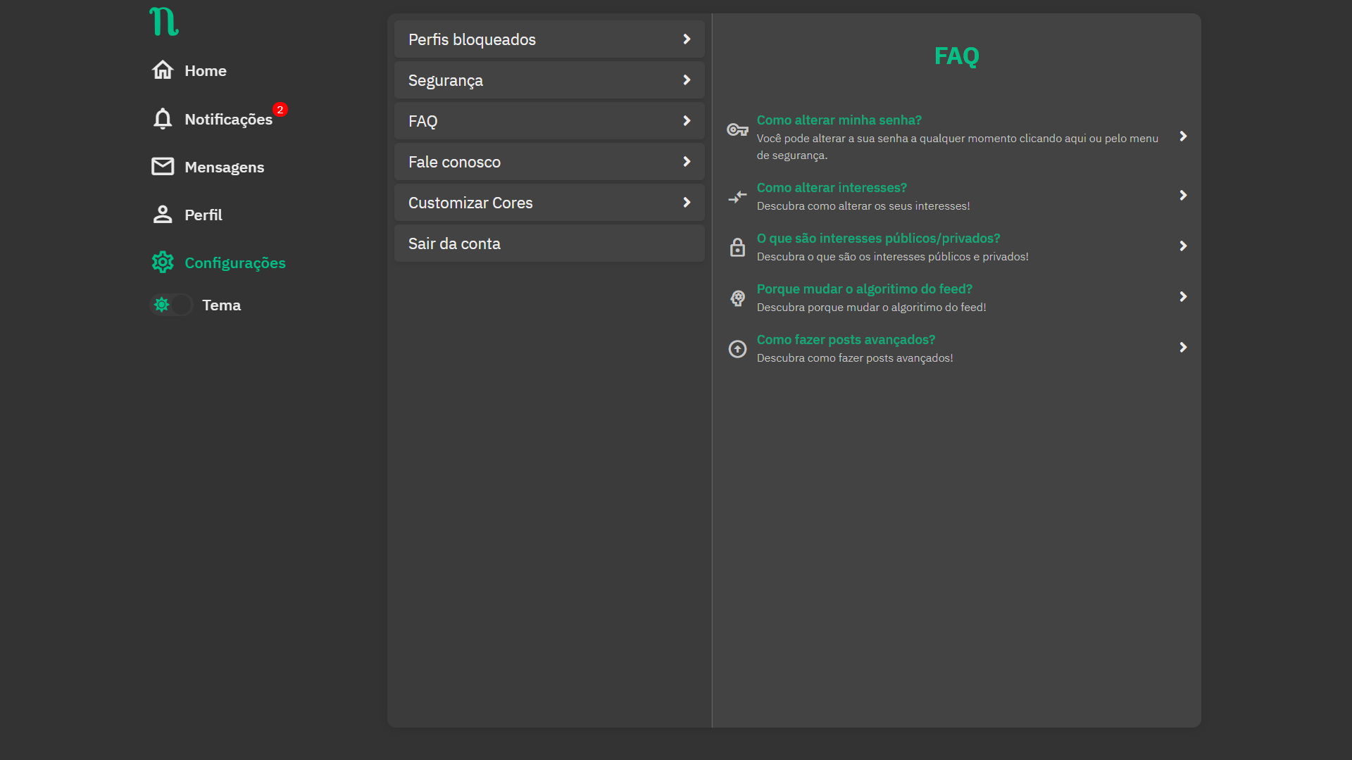 The main purpose of this social network is to give users control over the data generated in the platform so they can easily find other people with advanced searchs. This is done with customizable algorithm weights and an advanced user search by interest system.