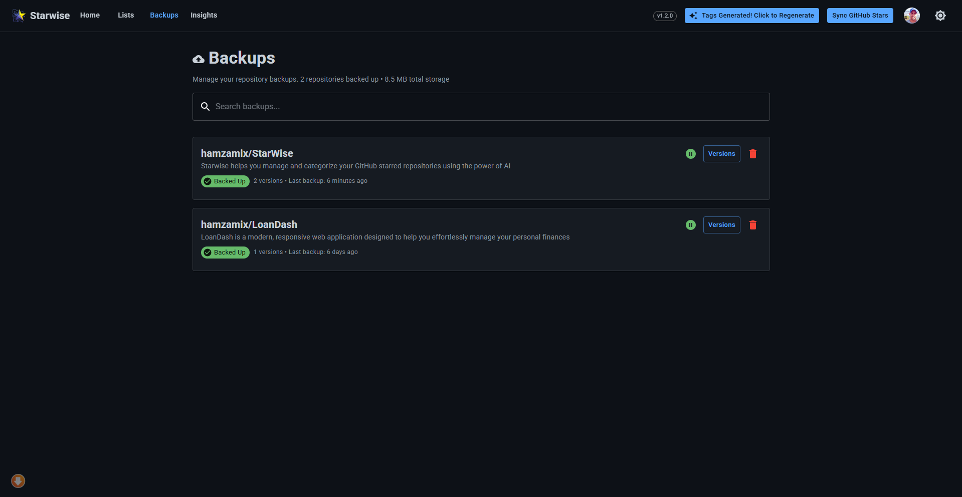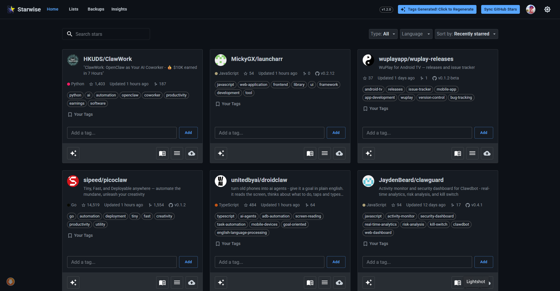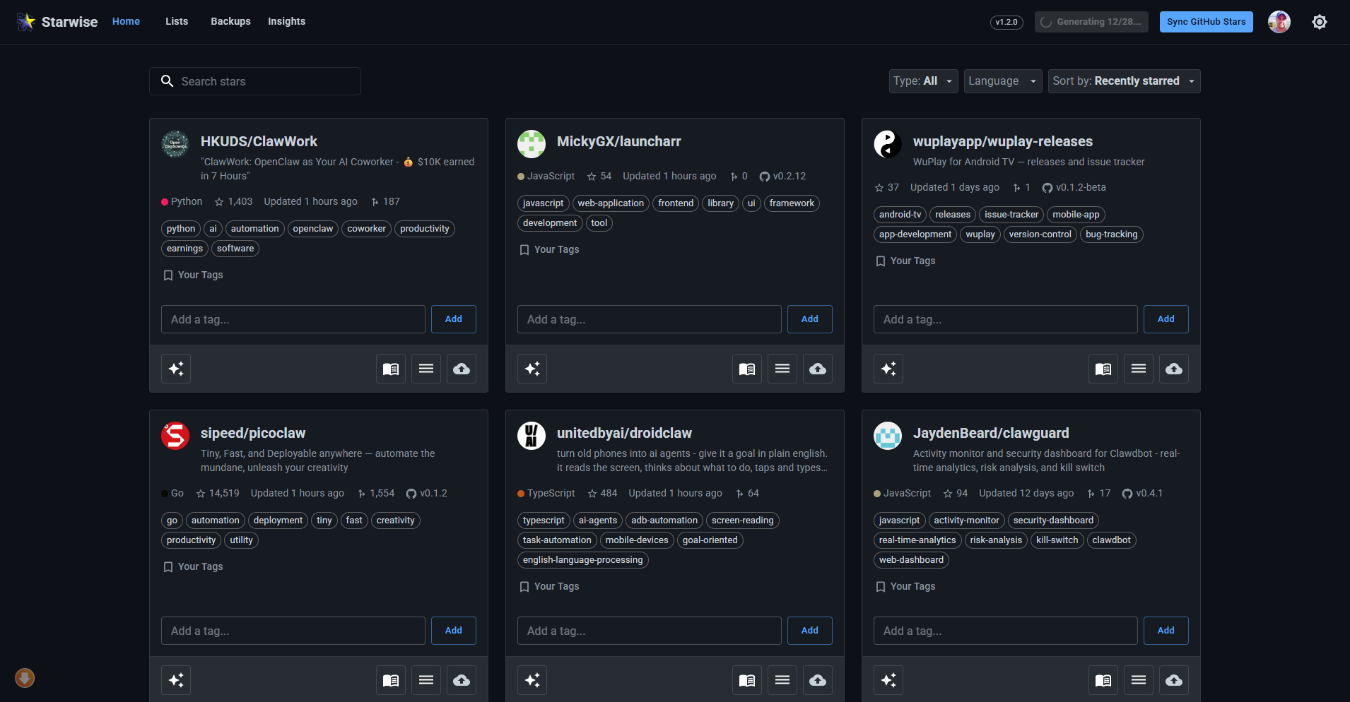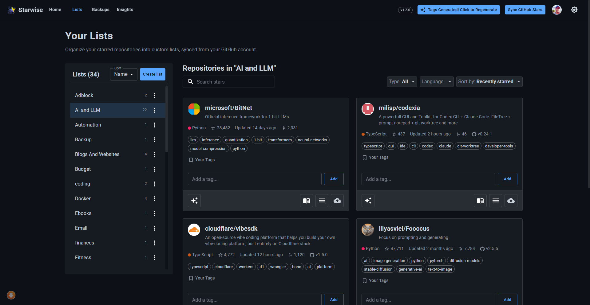 - Bulk Operations: Move repositories between lists and manage tags efficiently