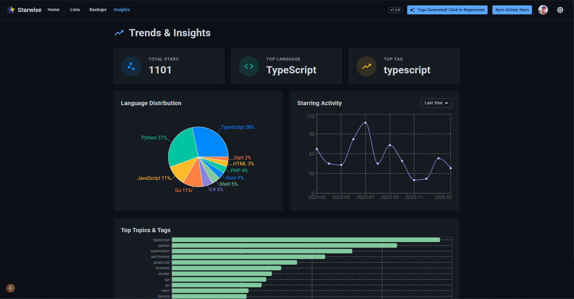 - Custom Lists: Create and manage custom lists to categorize repositories