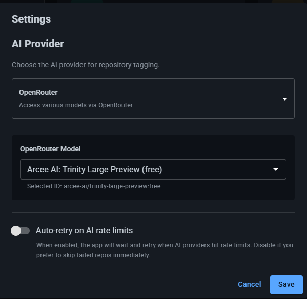 - Automatic Tag Generation: Uses Google Gemini AI to analyze repository metadata and generate relevant, technical tags