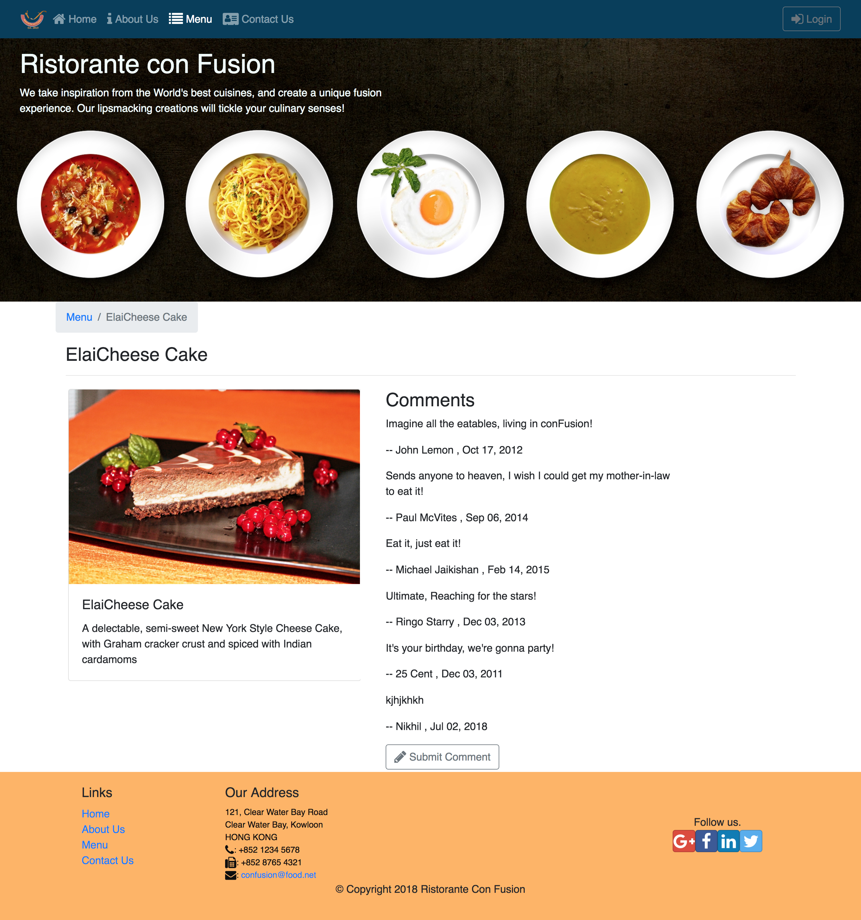 Ristorante Con Fusion is a Single-Page ReactJS Web Application (SPA) for an Indian-based Restaurant called Confusion that aims to show restaurant's available dishes and make users able to choose favorite dishes and comment them. The application is built on the React-Redux Architecture and using RESTful web services architecture. I have developed this Website(SPA) using ReactJs , Redux Architecture and REST API Client Server Communication.