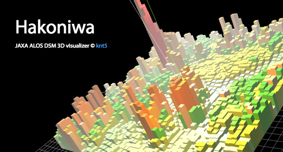 3D visualizer of elevation data including the height of buildings (DSM), which was recorded by the Advanced Land Observing Satellite "Daichi" of JAXA.