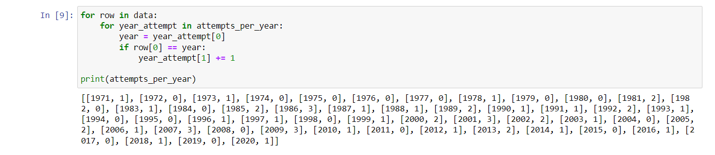 J'affiche maintenant le nombre de tentatives en fonction de l'année