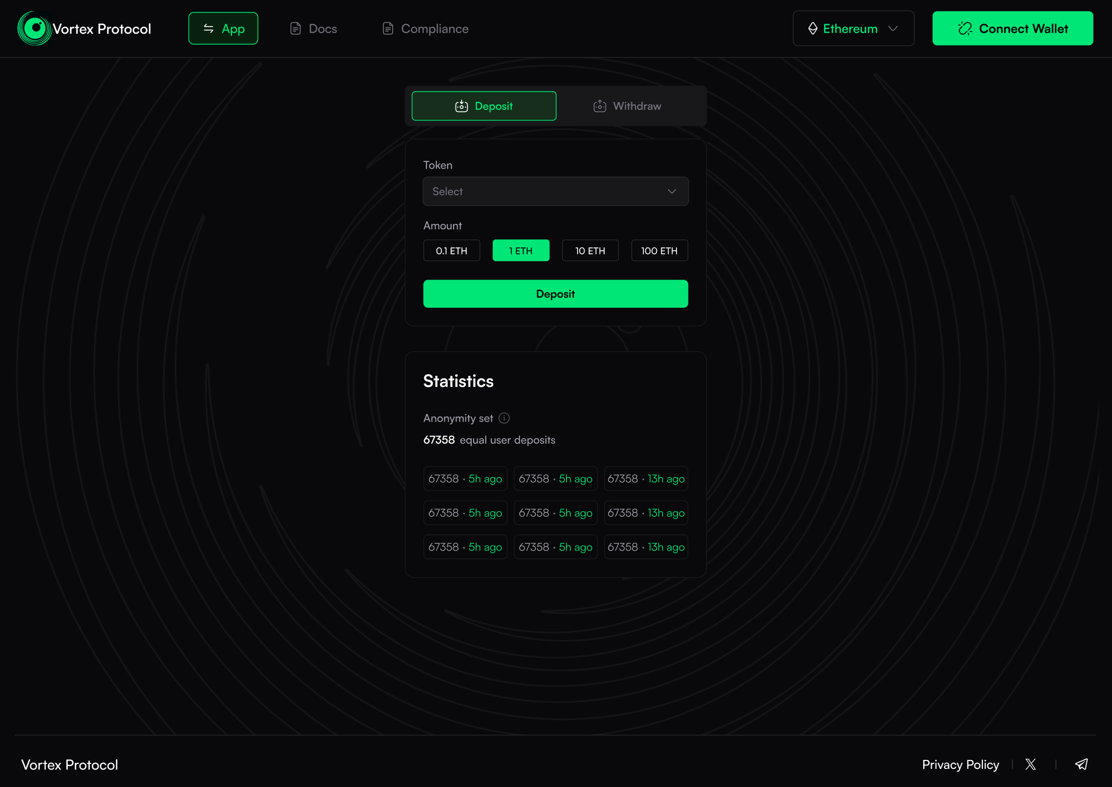 Vortex Protocol is an EVM privacy transfer layer based on Uniswap v4 Hooks - Atrium Hackathon, #2nd place