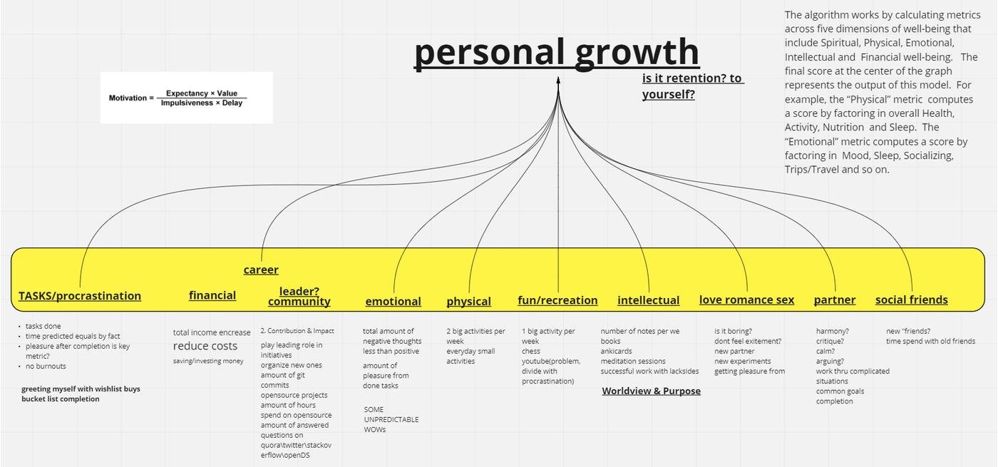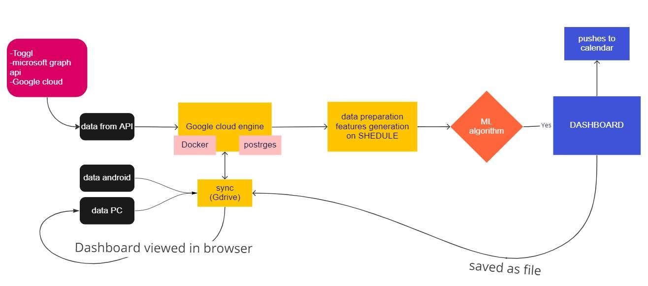 - As a result, I wanted to analyze progress every day and predict (with the help of machine learning) the most suitable tasks (for work and life), and habits for the best balance between life goals.