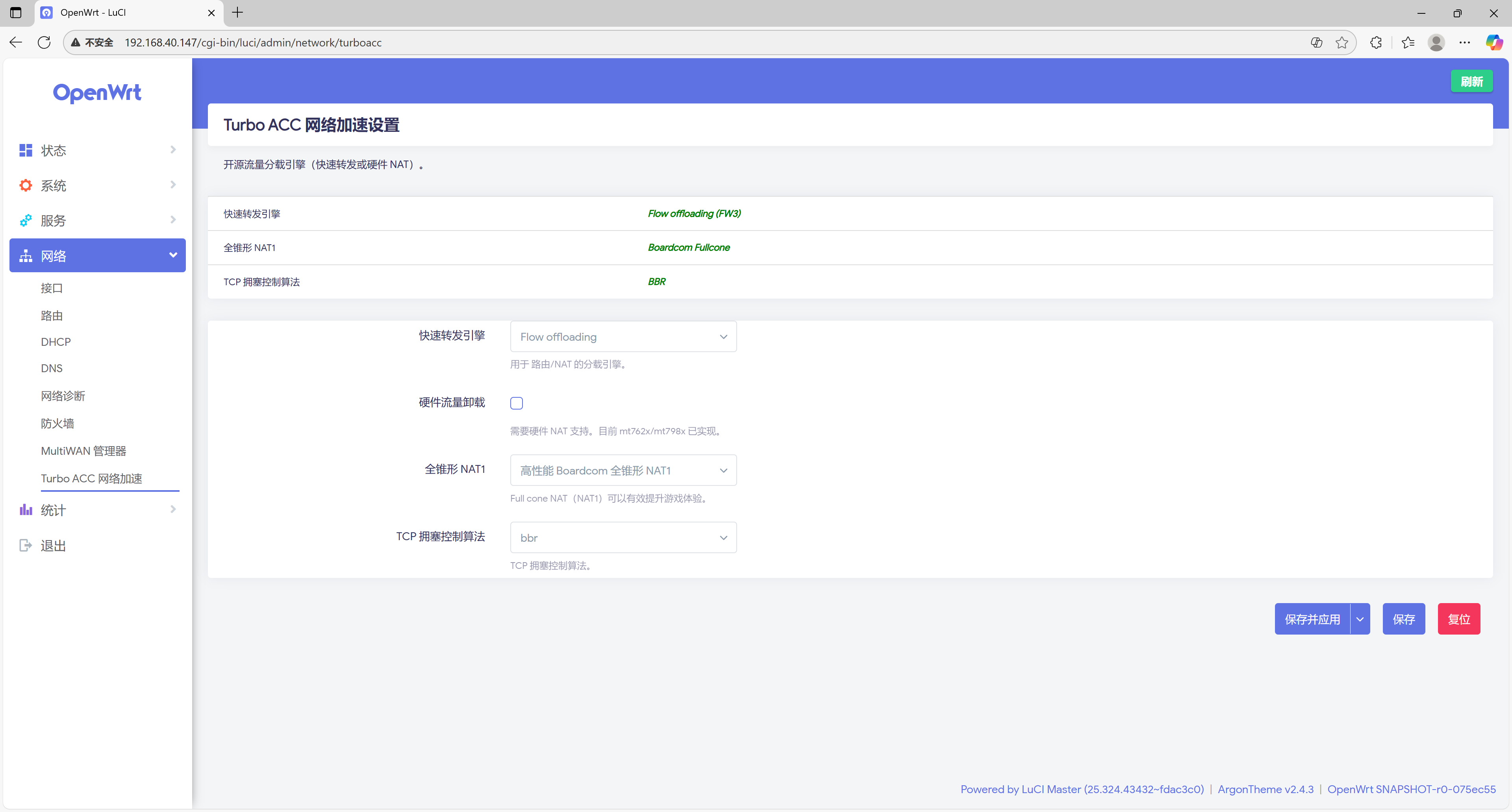 一个适用于官方Official OpenWrt(24.10/25.12/snapshot) firewall3/firewall4的turboacc 包括以下功能:快速转发引擎、全锥形 NAT1、TCP 拥塞控制算法 支持内核版本:6.6、6.12、6.18